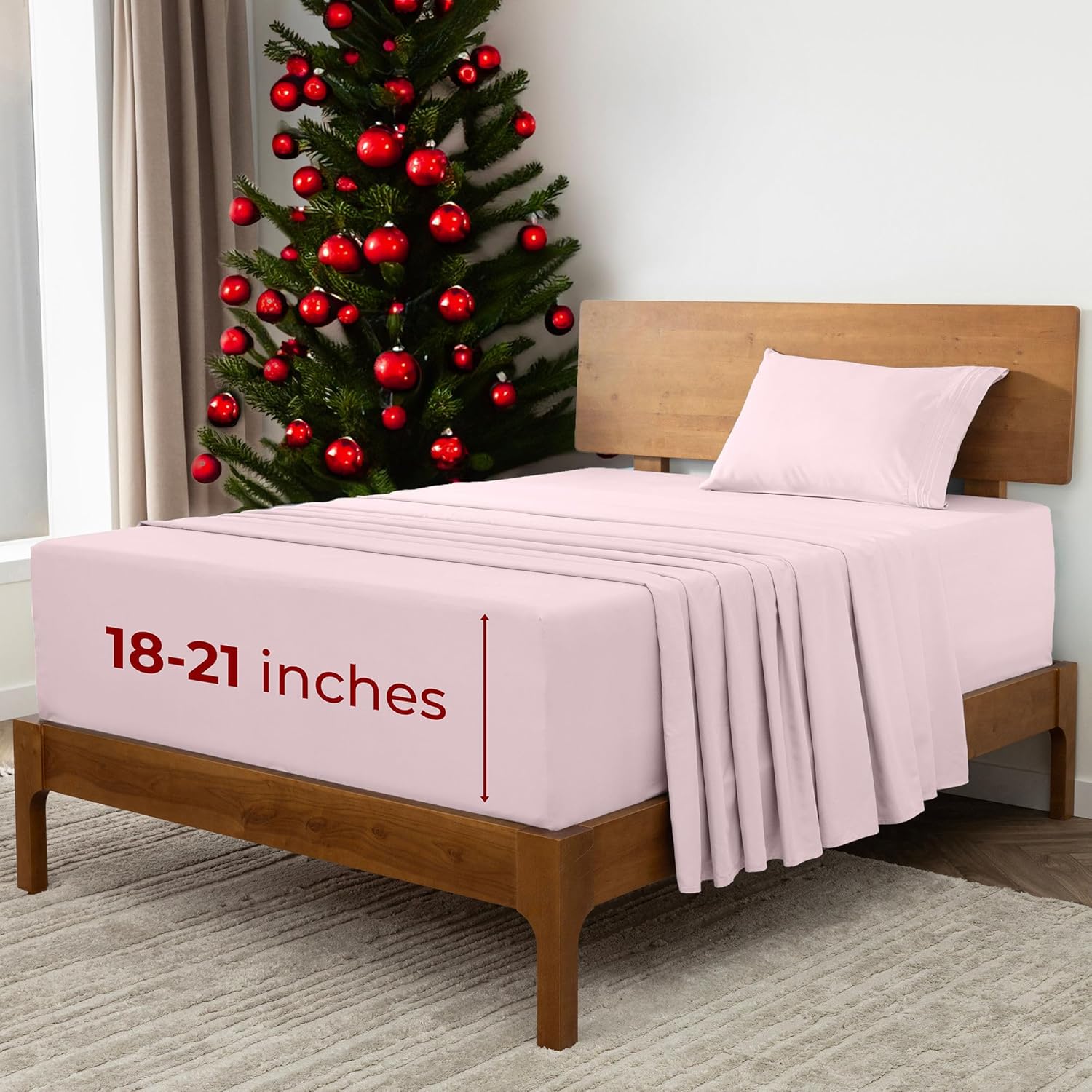 Mellanni Extra Deep Twin Sheets - 3 PC Iconic Collection Bedding - Hotel Luxury, Ultra Soft, Cooling Bed Sheets - Wrinkle, Fade, Stain Resistant (Twin, Blush Pink)