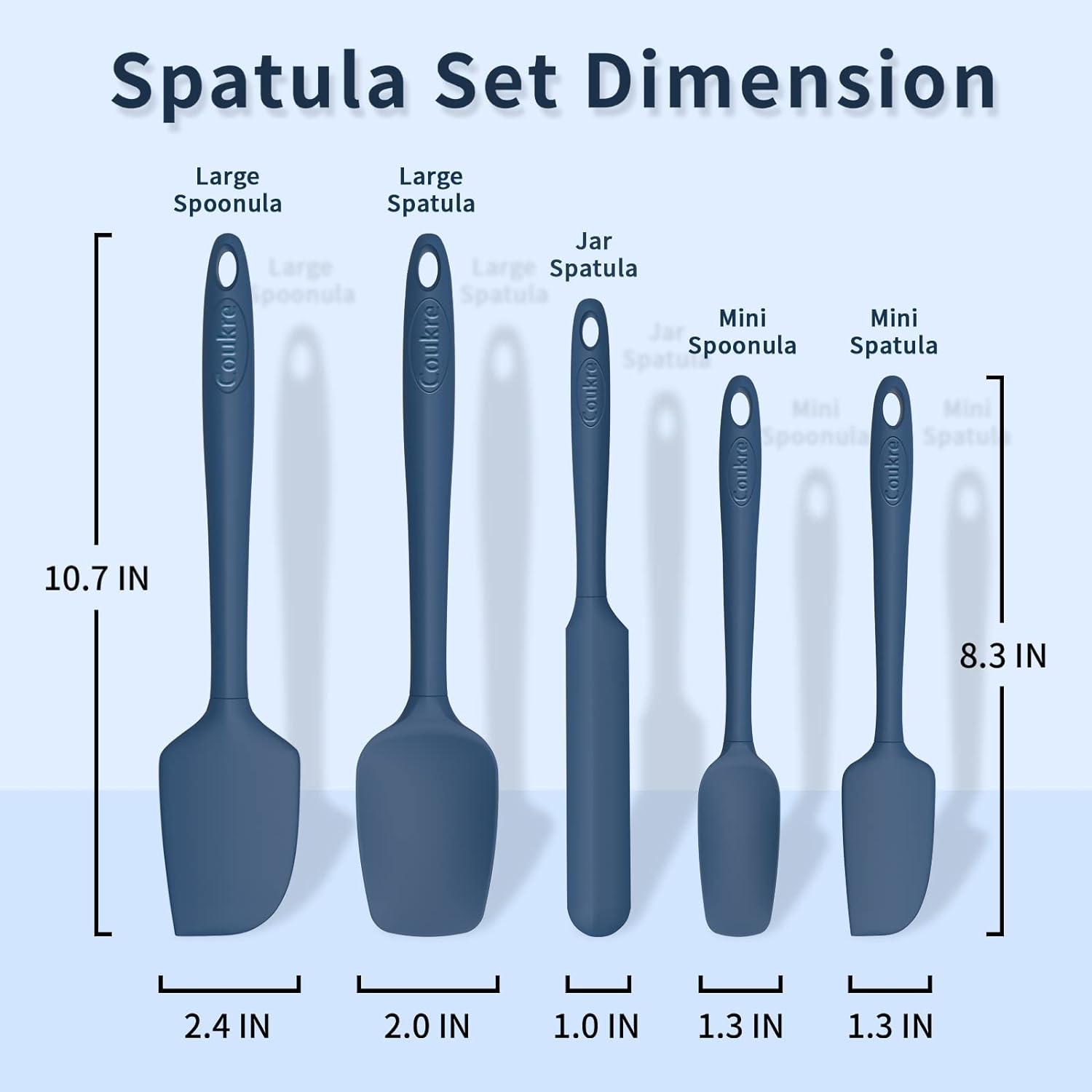 - [Versatile Spatula 5-Piece]: Coukre Silicone spatulas heat resistant,1 large spatula, 1 small spatula, 1 large scoop spatula, 1 small scoop spatula, 1 straight spatula