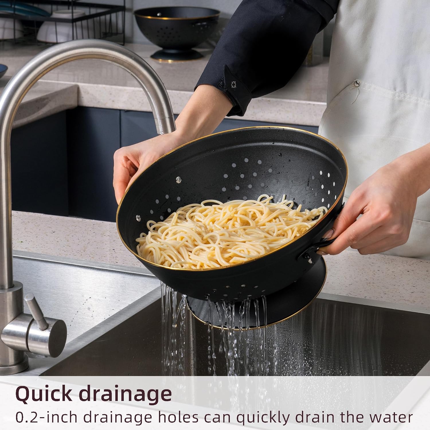 - 【Easy Cleaning】:This kitchen colander set is super easy to clean, dishwasher safe.After cleaning, you could wipe with a damp cloth and dry thoroughly. If you have any problems when you receive the produst, please feel free to contact us and we will give you a satisfactory solution.