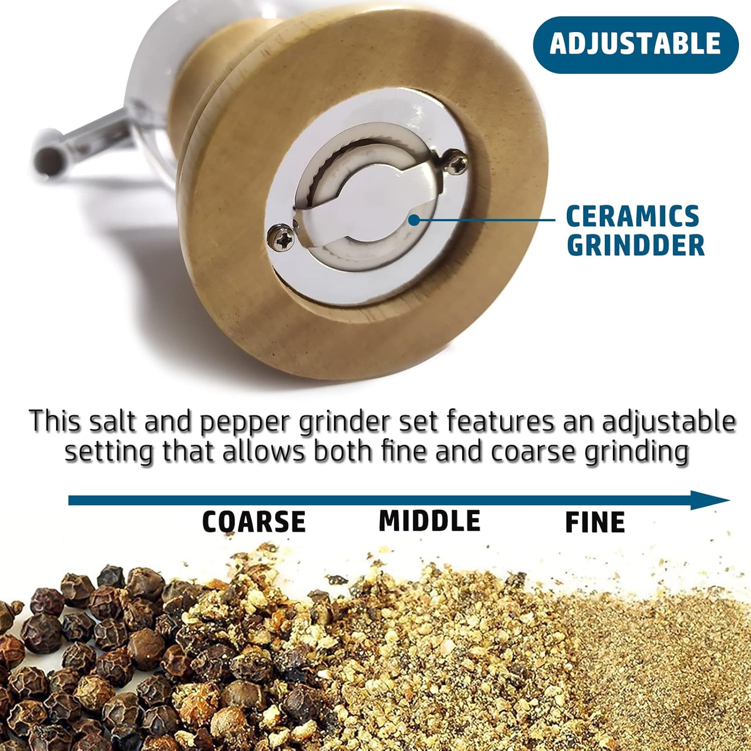 Classical Hand Shake Wood Pepper Grinder Set & Gorgeous Salt Wooden & Acrylic,Ceramic Blades Upgrade metal handle,Enjoy Your Best Fresh Ground Pepper Various spices (Burlywood 1pcs-5in)
