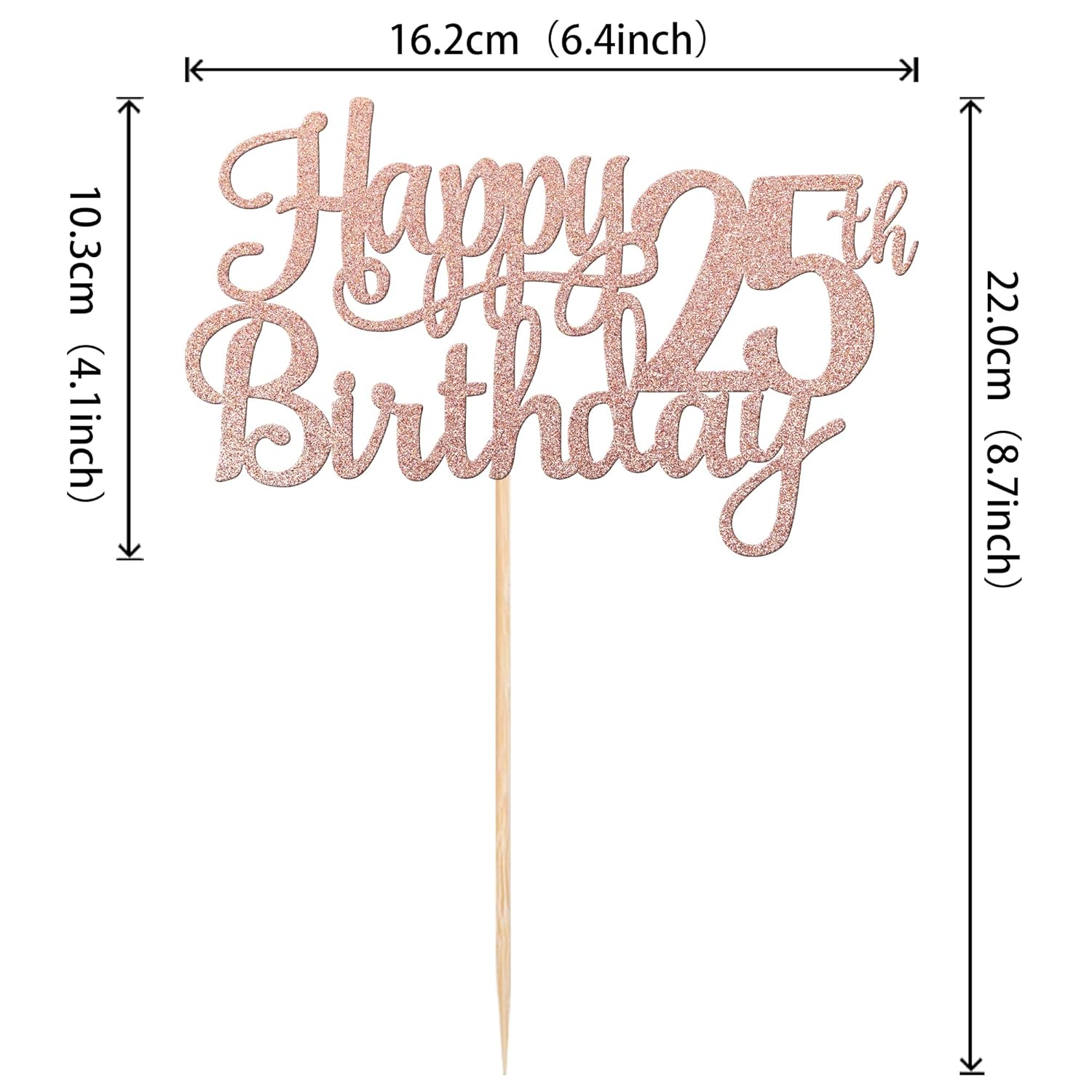 - Wide Usages ! The cake topper is perfect for happy 25th birthday theme party, cheers to 25 years birthday theme party cake decorations, they can make your cake more attractive and bring the fun to your party.You can also apply them for ice cream, fruits, cookies and other desserts.