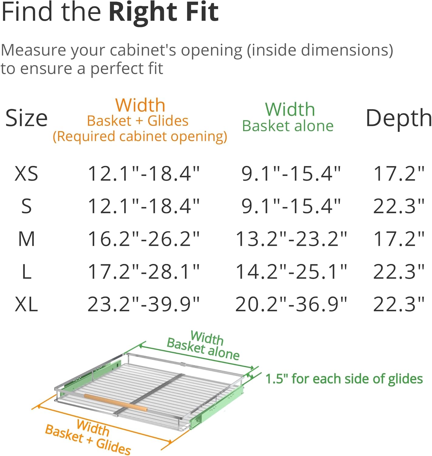 - EXPANDABLE DESIGN: This pull out cabitnet shelf is designed to fit in most cabinets. The width of the wire basket can be adjusted from 12.1“ to 18.4”. The new expandable design gives you a better experience and saves your space