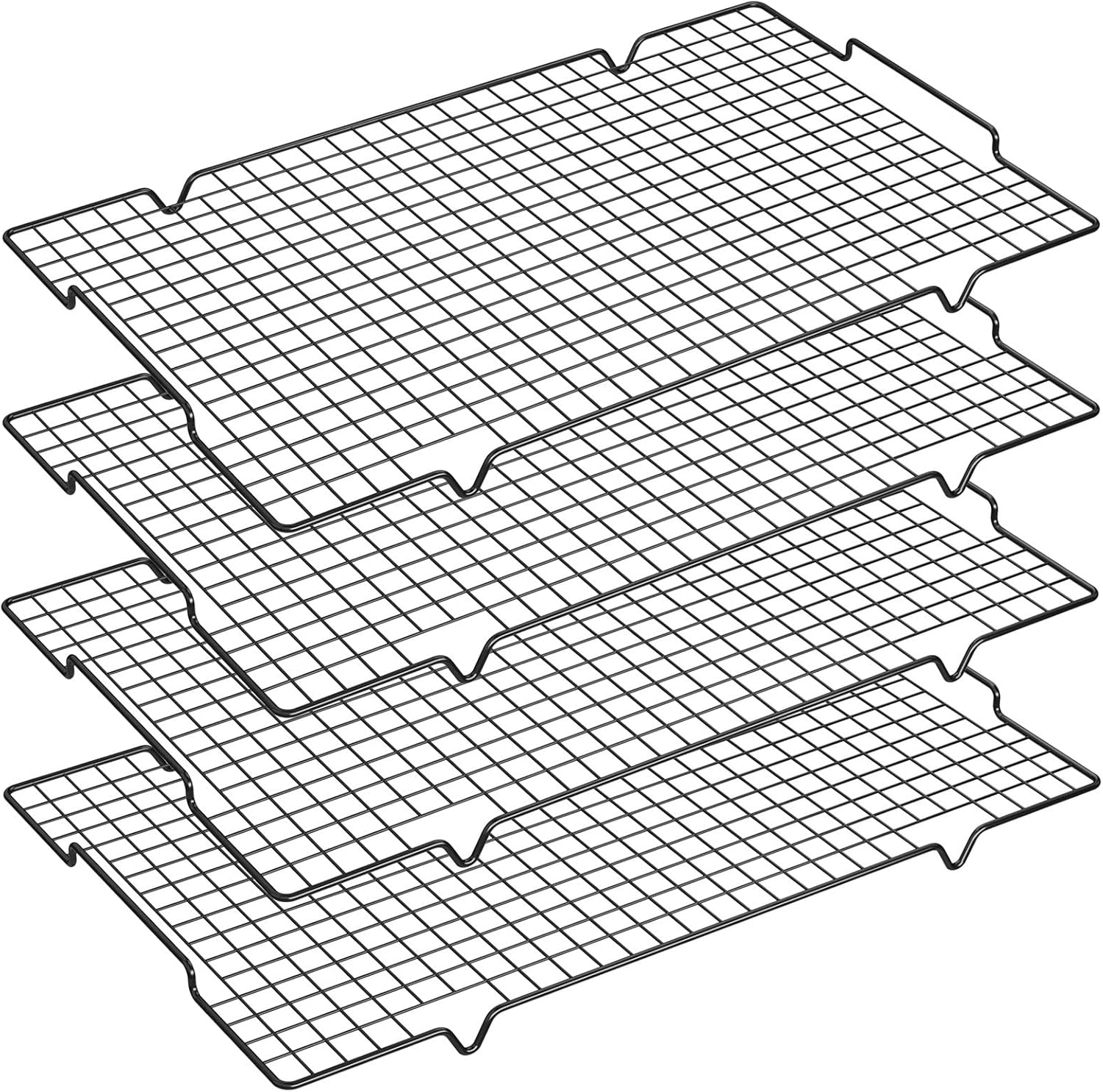 HULISEN 4 Pack Cooling Racks - 16" x 10", Nonstick Wire Baking Rack with Handle fits Half Sheet Pan for Cooking, Roasting, Grilling, Drying, Metal Mesh Cookie Rack for Cooling Cake, Oven Safe