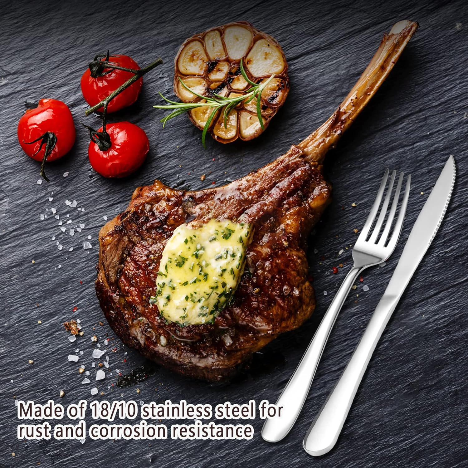 - 12 PCS Best Match : This silverware set comes with 6 Dinner Forks, 6 Dinner Knife, essential for families or restaurants.The set is also an irreplaceable dining tool whether it is for daily use or for preparing dinners or parties.