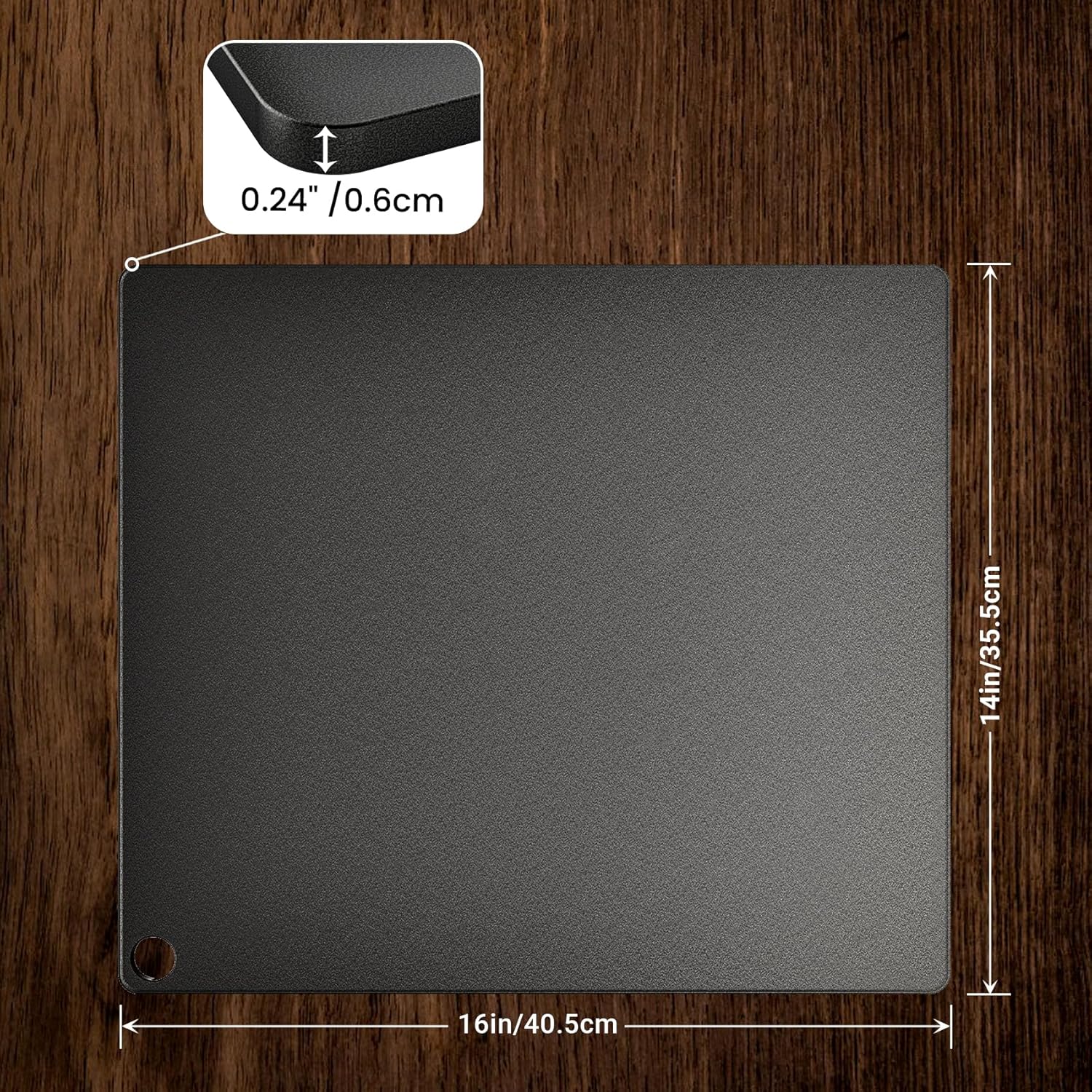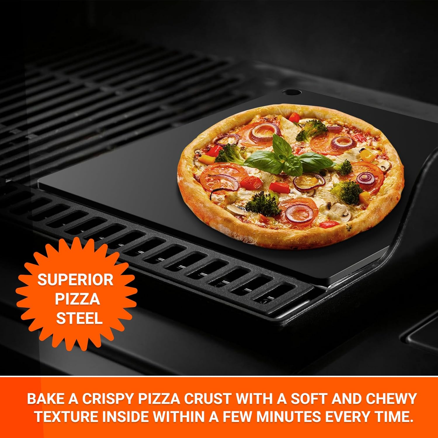 - 【Perfect Size-Match For Oven, BBQ, Grill】 - The 14" x 16" inch rectangular baking steel has a surface area large enough to fit in any standard oven on the market. pizza steel uses are not limited to making pizza but also the perfect tool for baking bread, fajitas, pancakes and more