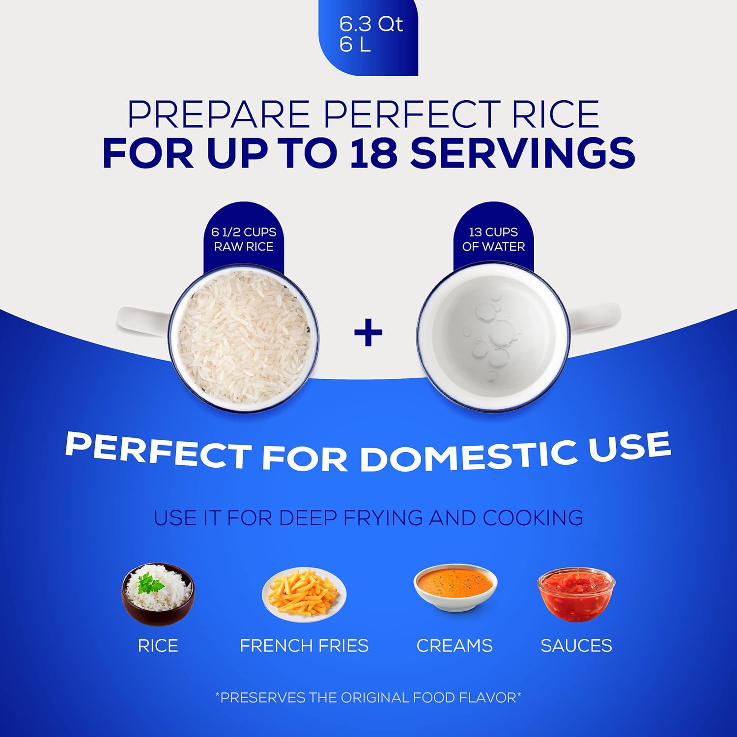 - Size : 6.3 Quart - 18 Cups