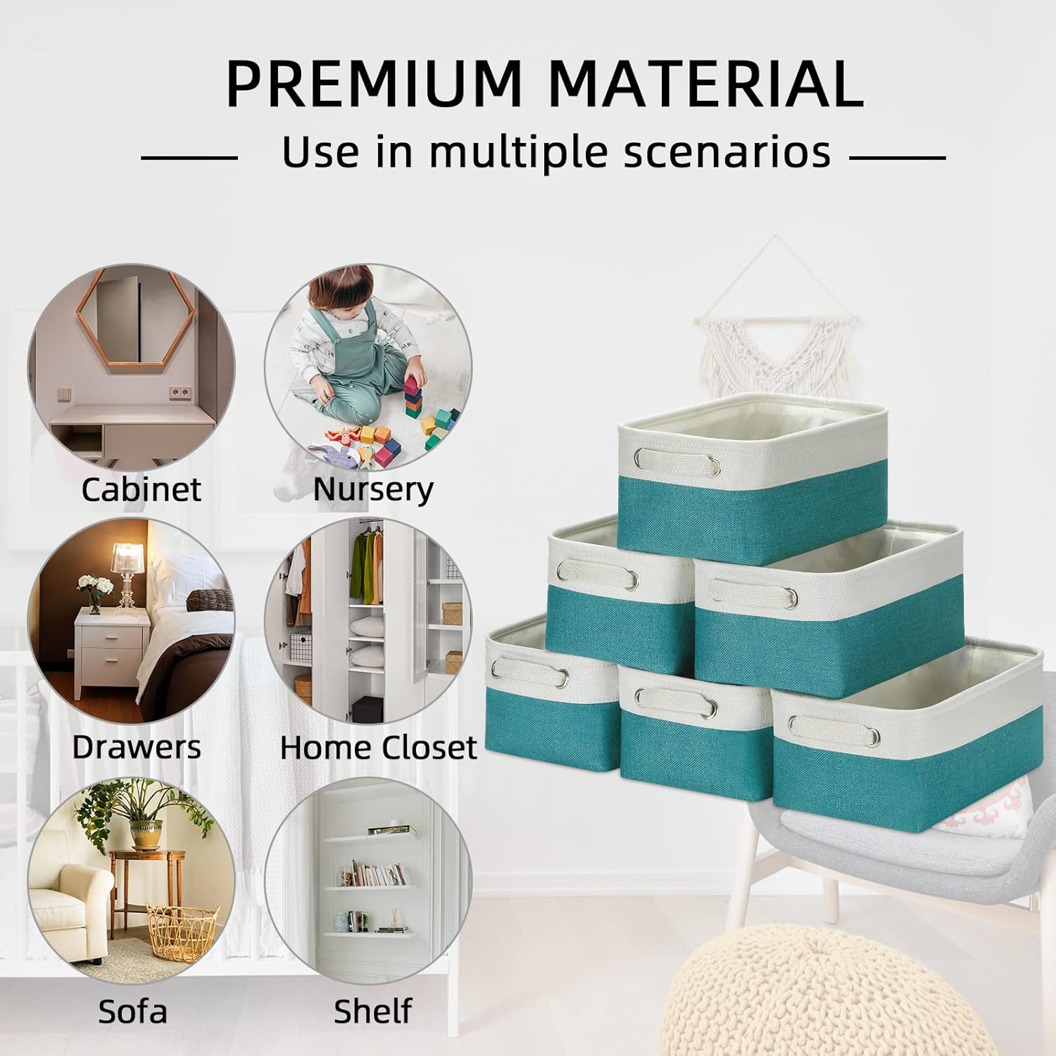 HNZIGE Small Closet Storage Baskets for Storage,Rectangular Storage Baskets Bins for Nursery,Gifts Empty Baskets for Organizing Shelves,Baby,Toy,Home(White&Teal,11.8" x 7.8" x 5.1")