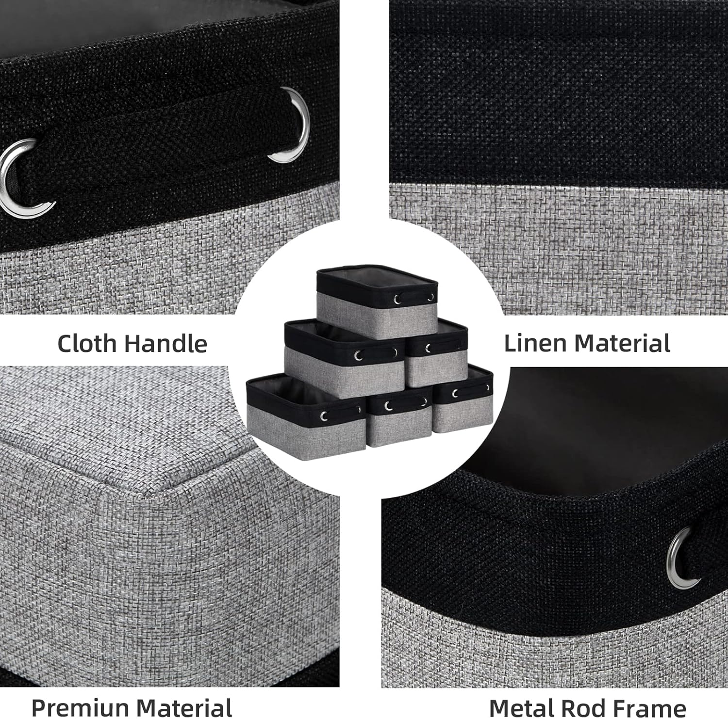 - 【Fabric Storage Bins Set】Set includes 6 fabric collapsible storage baskets(11.8" x 7.8" x 5.1"). Canvas storage bins set are cloth handles on both sides, Fits well with a variety of storage compartments, containers, or shelves. perfect for use as black clothing storage bins. These fabric storage baskets for shelves are a new and exclusive design for keeping clothes and household items in the order