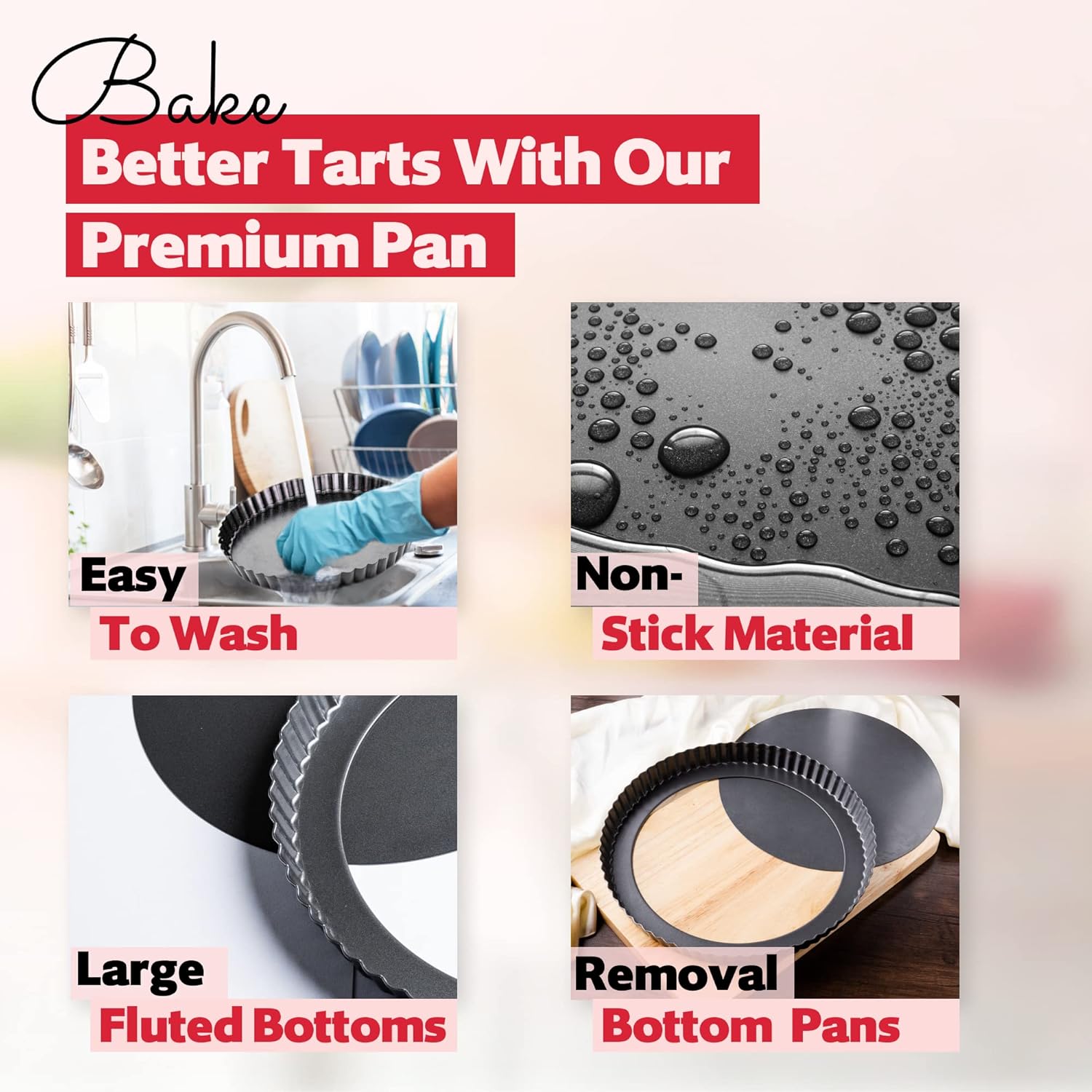 - ❖ No More Spilling: Tired of messy leakage ruining your baking experience? Our advanced technology fitted tart pans with removable bottoms help you to bake quiche like a pro without any fear. Take your baking game to next level with our leak-proof pans