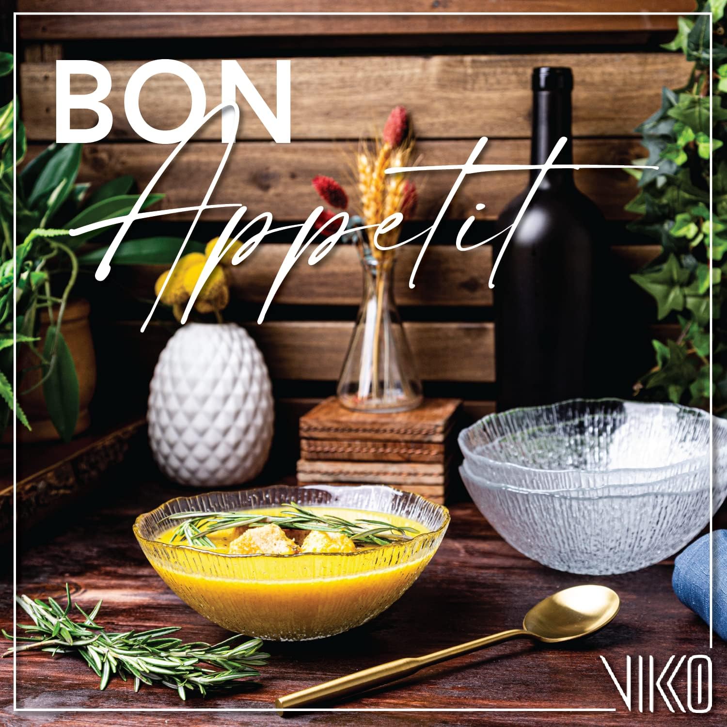Vikko Soup Bowls, 6.5 Inch Salad Bowls, Glass Soup Bowls, Elegant Textured Glass Bowls, Set of 6, Dishwasher Safe