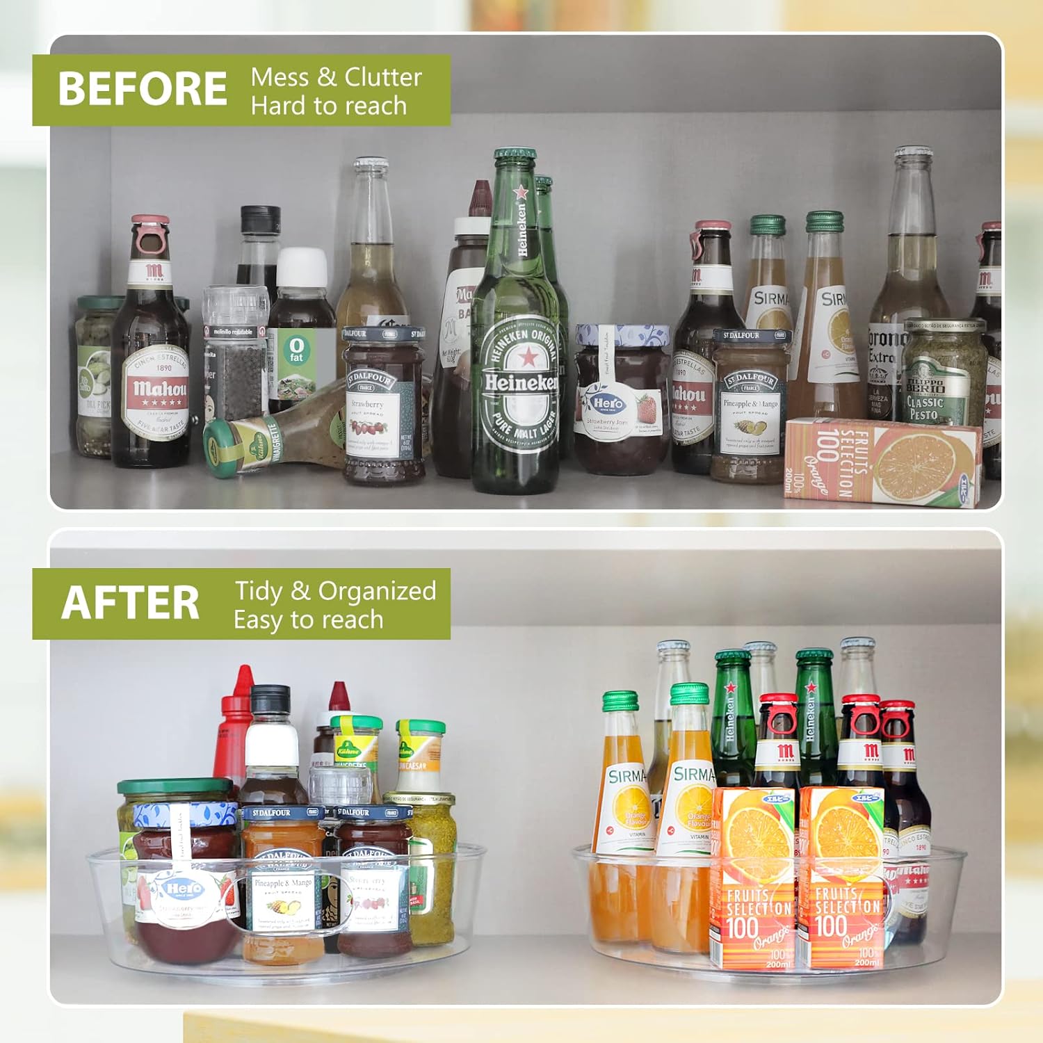 - SAFETY & HIGH QUALITY - This lazy susan cabinet organizer is made of premium durable PE and BPA-free, very fall resistant, offering a long-term durability and safety for food, which is easy to clean with mild soap and water. NOTE: DON'T PUT IT IN DISHWASHER
