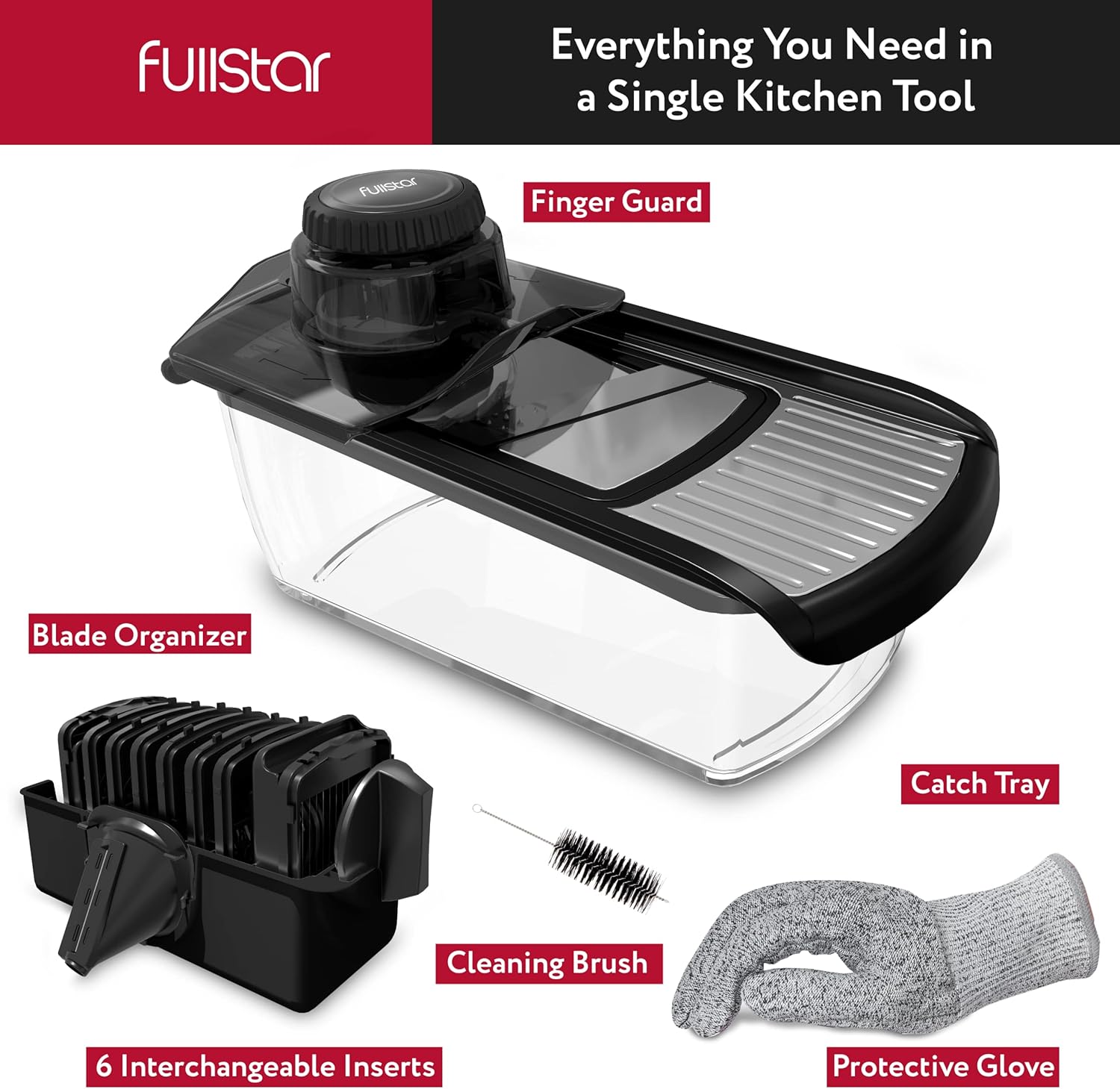 - The Ultimate Stainless Steel Mandoline - Rust-resistant and easy to wipe clean, This 11-in-1 essential home gadget from Fullstar has everything you need and more to slice, zest, grate, peel, ribbon, juice or spiralize in the kitchen!