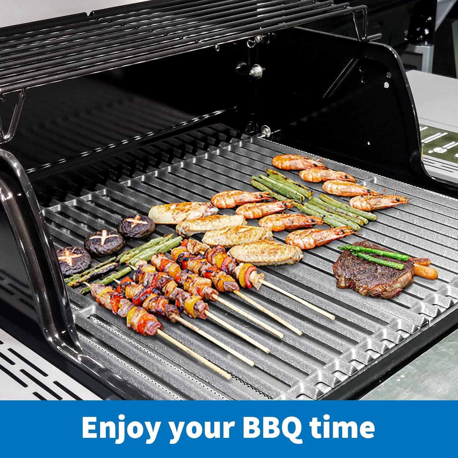 - 【More Durable】- Made of durable cast iron to ensure long-lasting use 【Retain Heat】- Heavy Cast iron grates not only heat evenly and retain heat superbly, but also deliver professional searing, able to give prominent sear marks to meat/ veggie►Breathe new life into your grill