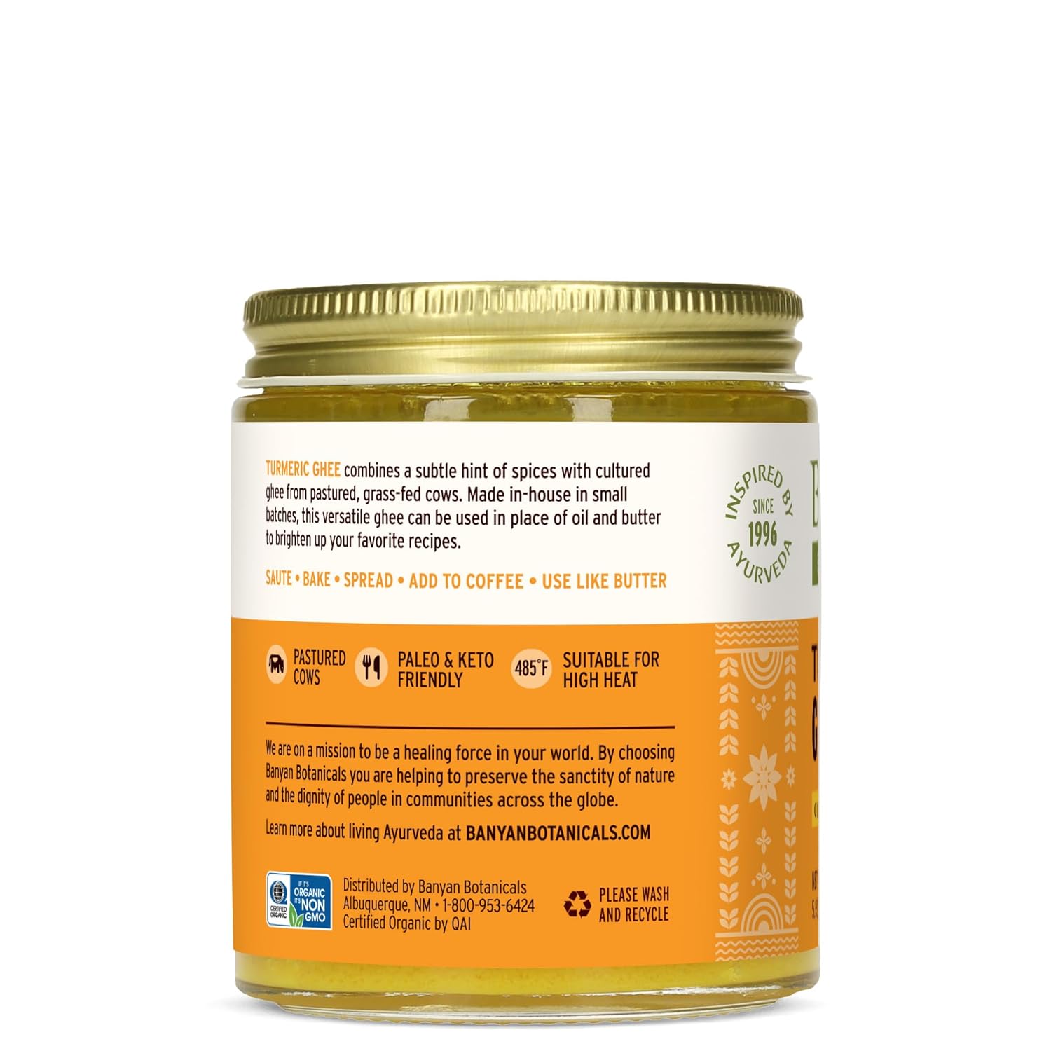 Banyan Botanicals Turmeric Ghee – Cultured Grass-Fed Organic Ghee (Clarified Butter) with Turmeric & Ginger – Oil & Butter Alternative for Cooking & Baking – 5.65 oz – Non-GMO Gluten Free Vegetarian