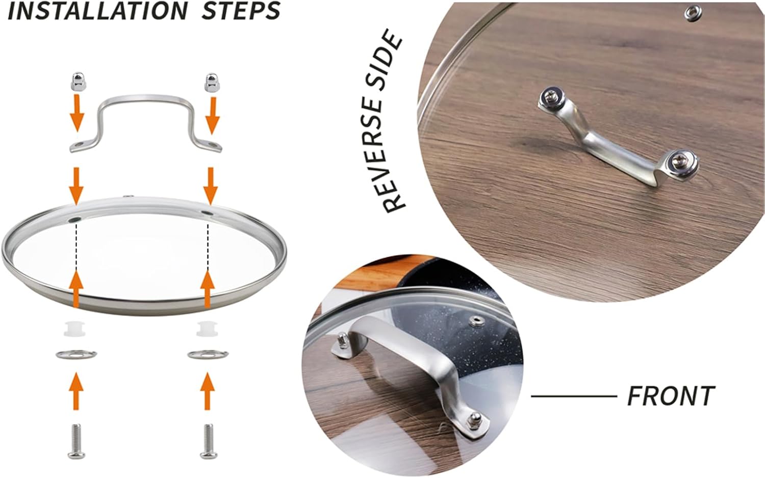 - 12" tempered glass lid is suitable for pots,pans and skillets.