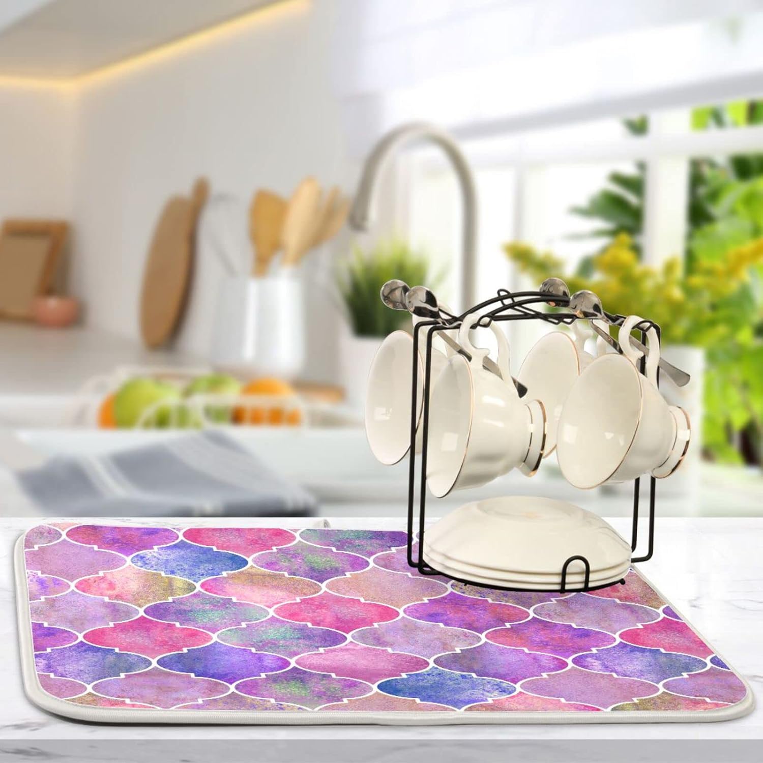 senya Super Absorbent Dish Drying Mat, Microfiber Fast-Drying Dish Mat, 24' x 18', Kitchen Dish Drying Pad, Vintage Decorative Moroccan, 18x24in, (g295080331p523c558s1114)