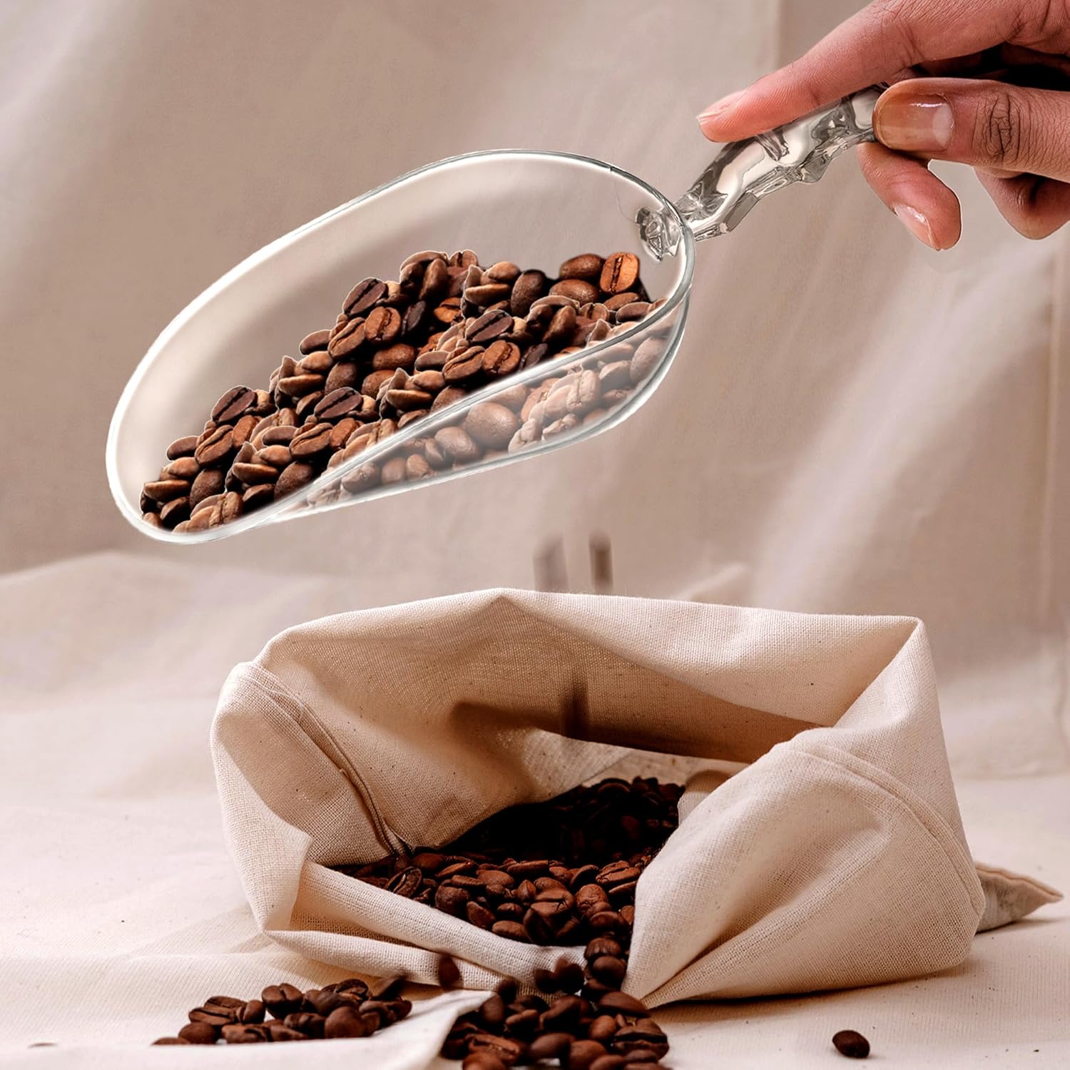 - [MULTIPLE USES] The scoop is good for vairous uses: ice cubes, beans, flour, baking ingredients, cereal, dry goods, pet food, bath salts, and more. A handy tool for your kitchen, bathroom, and laundry room.