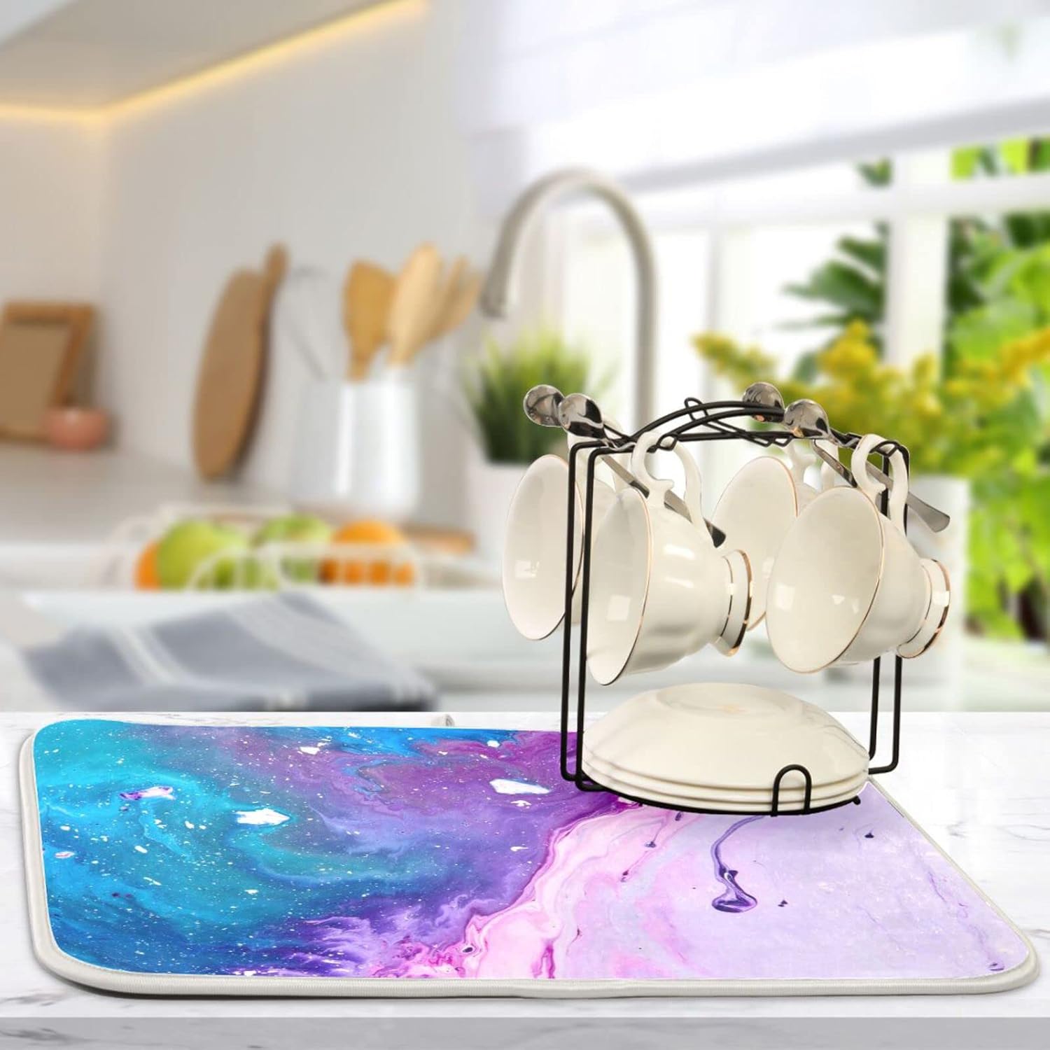 Super Absorbent Dish Drying Mat, Microfiber Fast-Drying Dish Mat, 24" x 18", Kitchen Dish Drying Pad, Abstract Purple Blue Marble