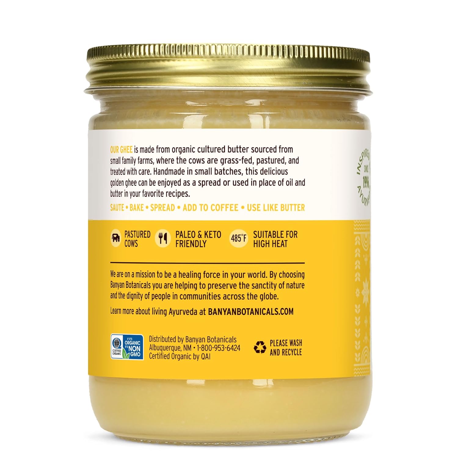 Banyan Botanicals Grass-Fed Ghee – Original Cultured Organic Ghee (Clarified Butter) – Tasty Oil & Butter Alternative for Cooking & Baking – 13.4 oz – Non-GMO Gluten Free Vegetarian
