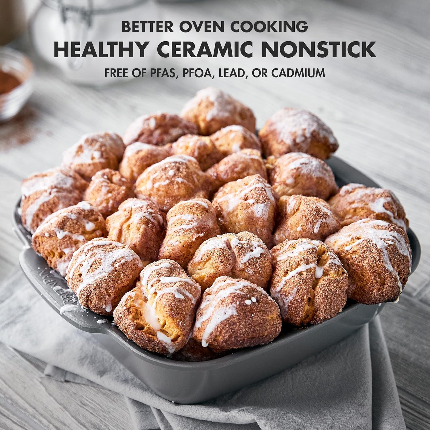 GreenPan Premiere Ovenware Healthy Ceramic Nonstick 8" Square Cake Baking Pan, Cast Aluminum Bakeware, Warp-Free, Oven and Broiler safe to 600F, Dishwasher Safe, PFAS-Free, Gray