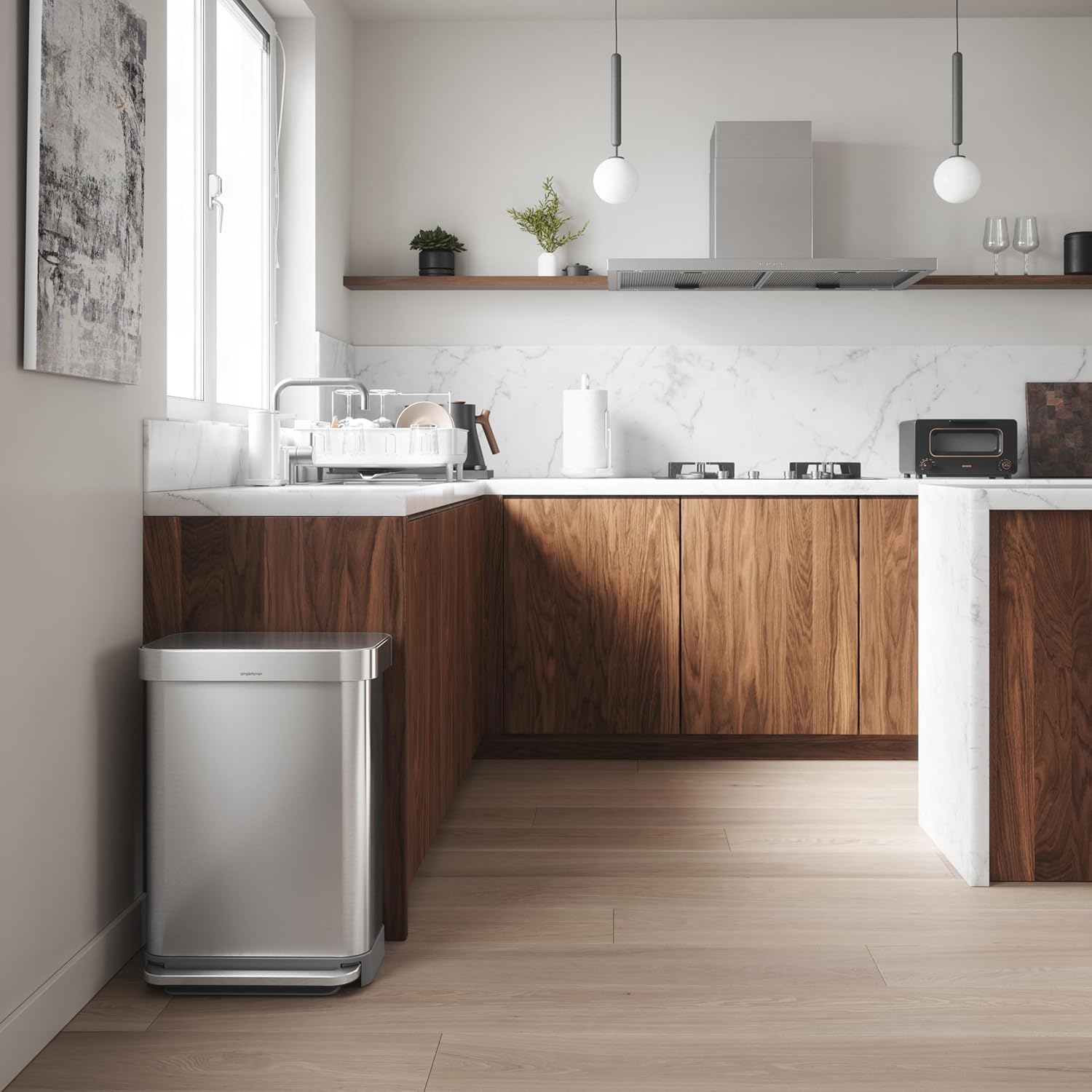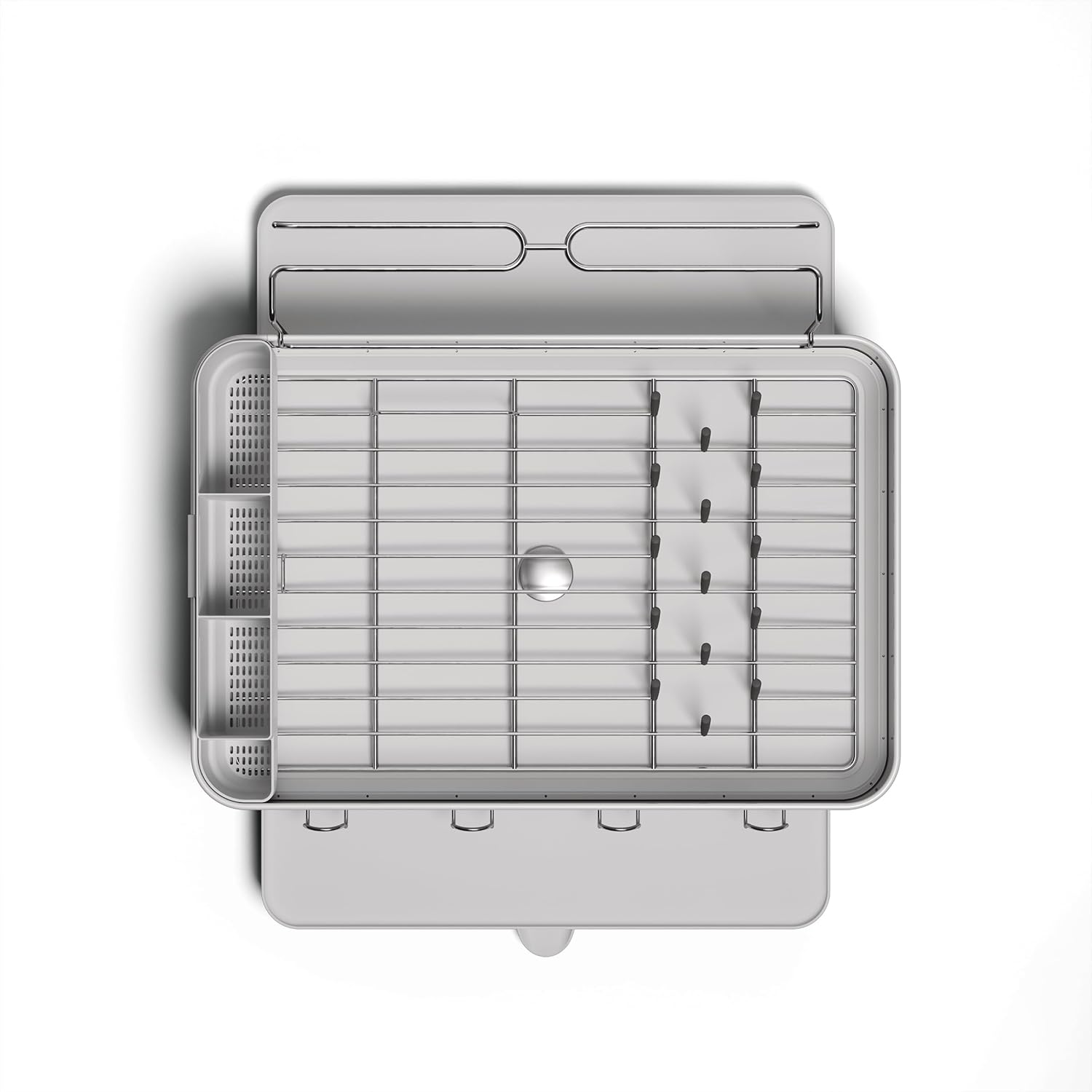 simplehuman Large Capacity Dish Drying Rack with Stainless Steel Frame, 360º Easy Drain Swivel Spout, Utensil & Wine Glass Holder, Anti-Residue Coating, Moisture Control Surface, White