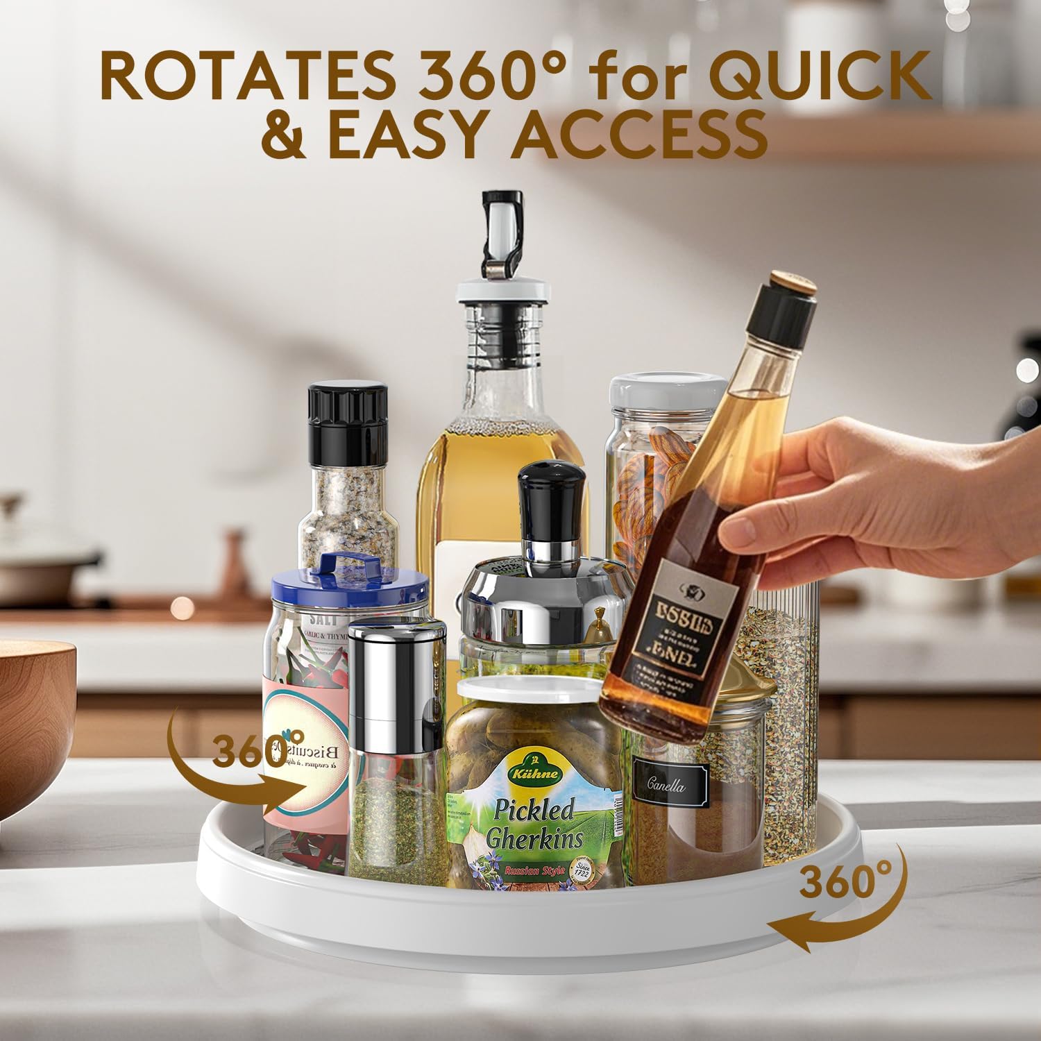 - Versatile Use:Our lazy susan turntable keep your space well organizered for kitchen storage cabinet, countertop, table top,fridge,spice rack and pantry, keeping condiments, snacks,jar neatly. it's also a medicine cabinet organizer, bathroom makeup laundry organization.