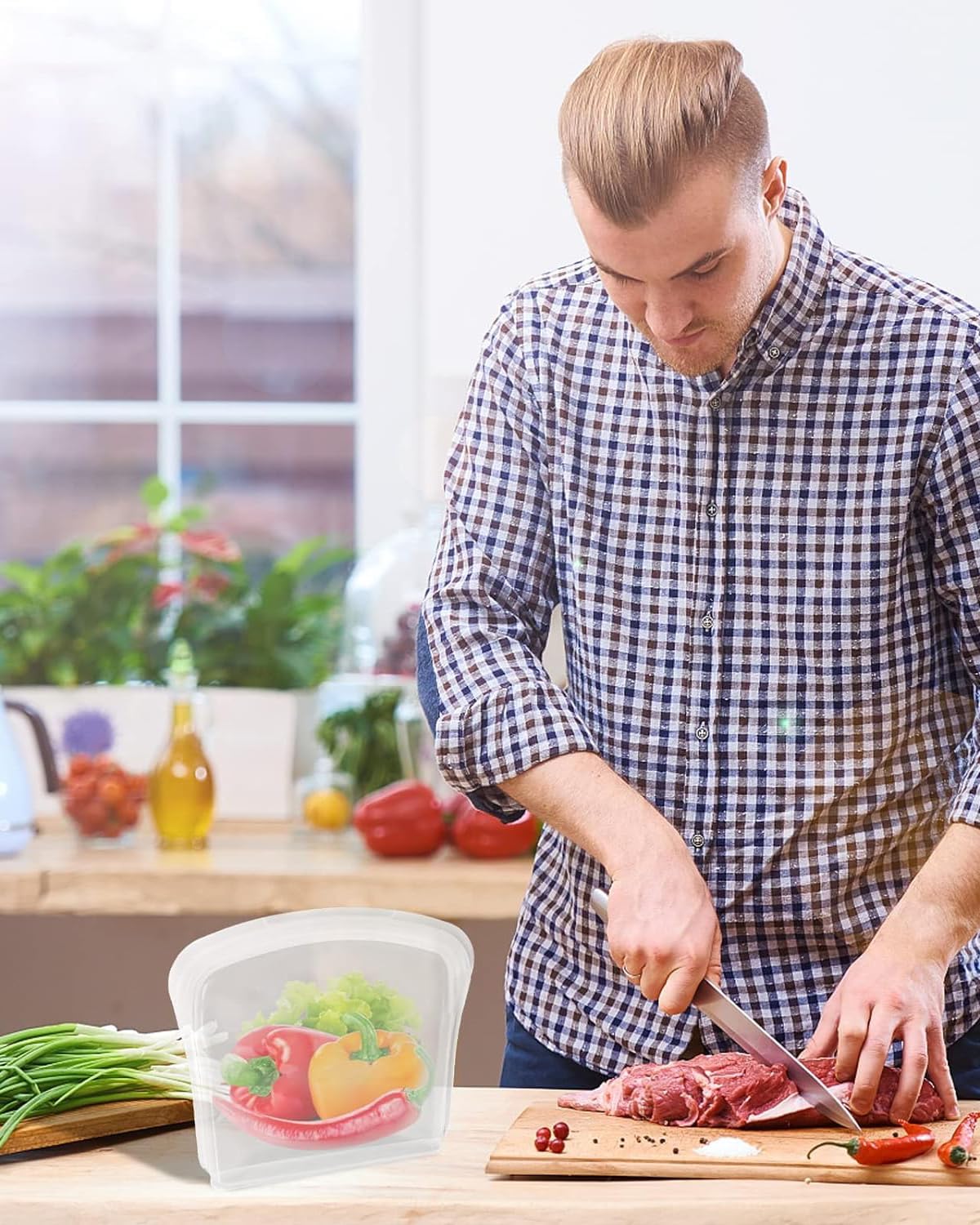 - FOOD GRADE SILICONE: Made from 100% premium food grade silicone, BPA, PVC, latex, and phthalates free. Compared with traditional plastic bags, our silicone food storage bags are environment-friendly!