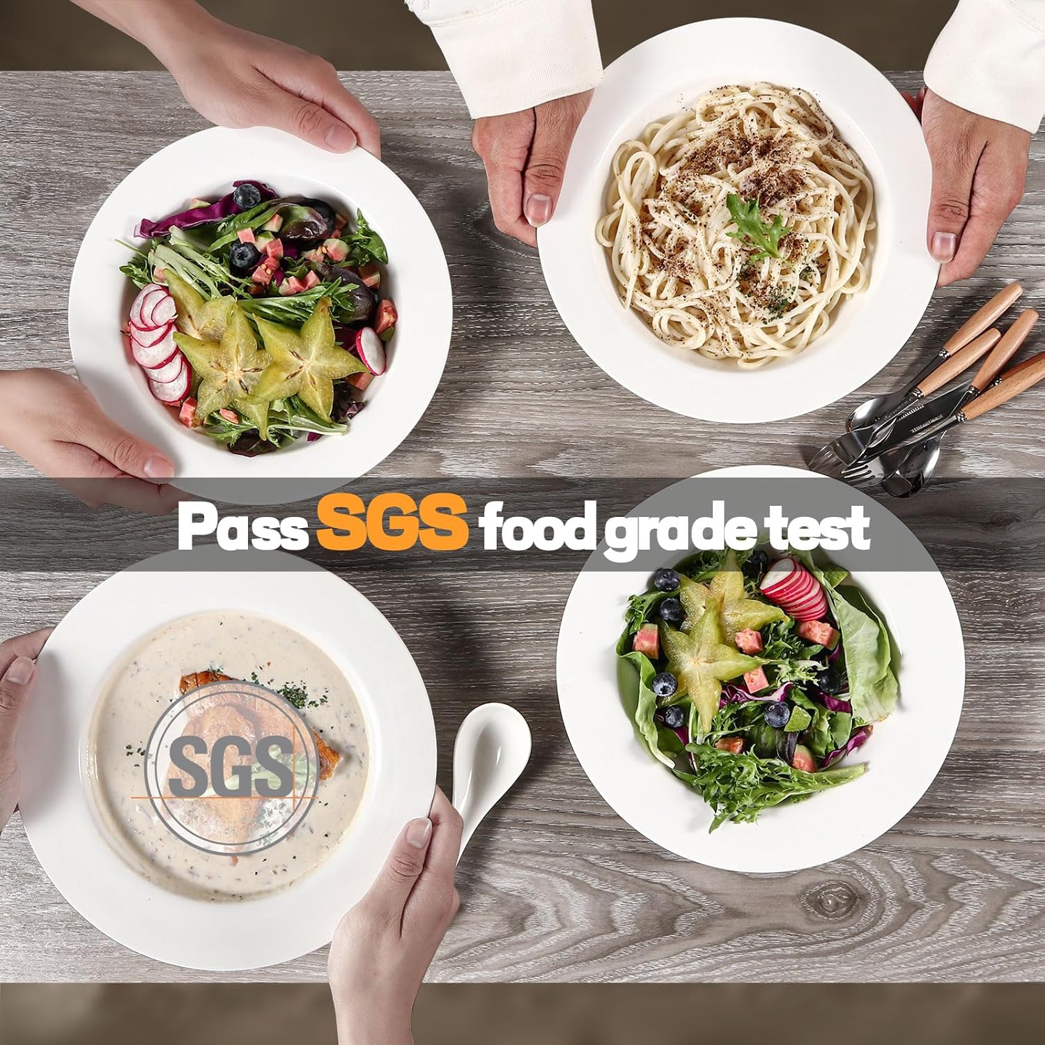 - 【PERFECT DEPTH AND REALLY VERSATILE】The pasta bowl is 1.9 inches deep and has a maximum capacity of 20oz. This is the perfect pasta plate to meet all your needs – it's shallow enough that you can put toast, a scramble, rice, appetizers, desserts, whatever in it – but deep enough to serve pasta, salads, thick soups, cereal, casseroles, oatmeal, chilis, curries, stews or noodle servings, Even serve cake and ice cream in these so there's no sauce dripping off plates.