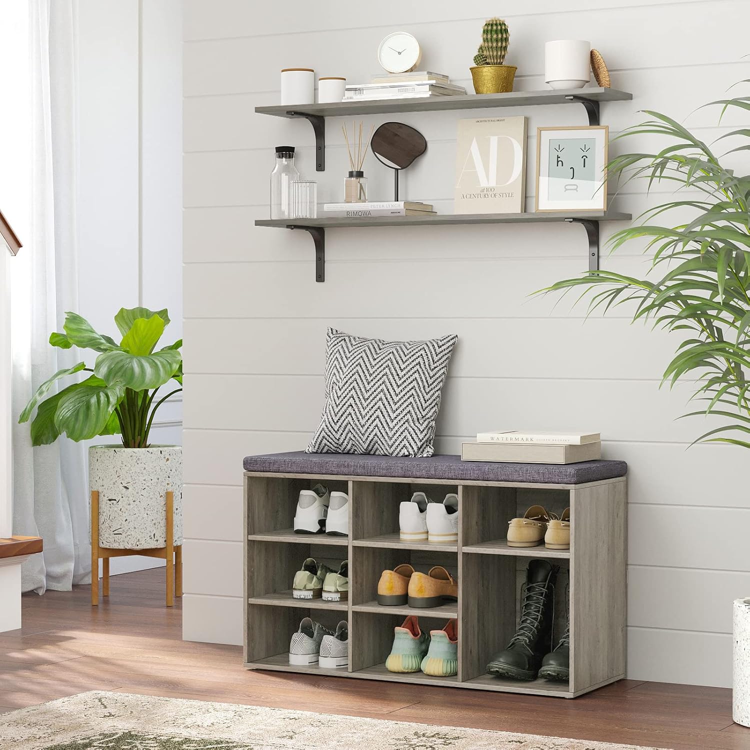 - ăPerfect Home DecorăL-shaped iron bracket, with super stability and elegant simplicity, never out of date. Minimalist design perfectly blends with your home decoration, adding art and modern style to your home. Create eye-catching areas by presenting well-distributed small-scale space. Enjoy a graceful life and feel the art of home easily in the perfect combination of smooth lines and heavy duty metals