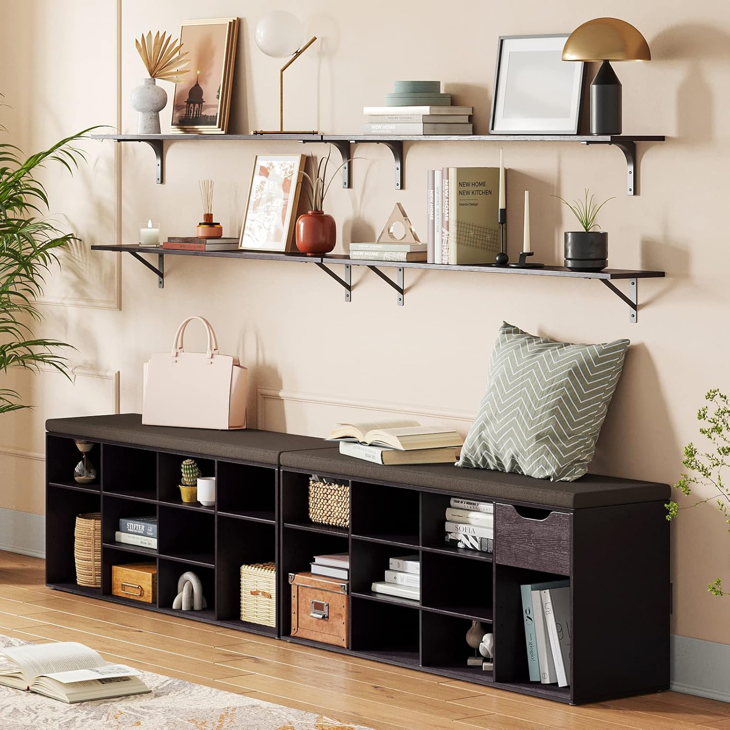 - ăWide ApplicationăExtra long shelves for wall storage is gospel of small family to enjoy the tranquility of home. Large floating shelves allow you to store books, games, decorations, plants, towels, photos, collectibles etc. Even to be an ideal play area for your cats. Create additional storage in living room, bathroom, bedroom, closet, balcony, study, kitchen, laundry, bar area, pantry and office