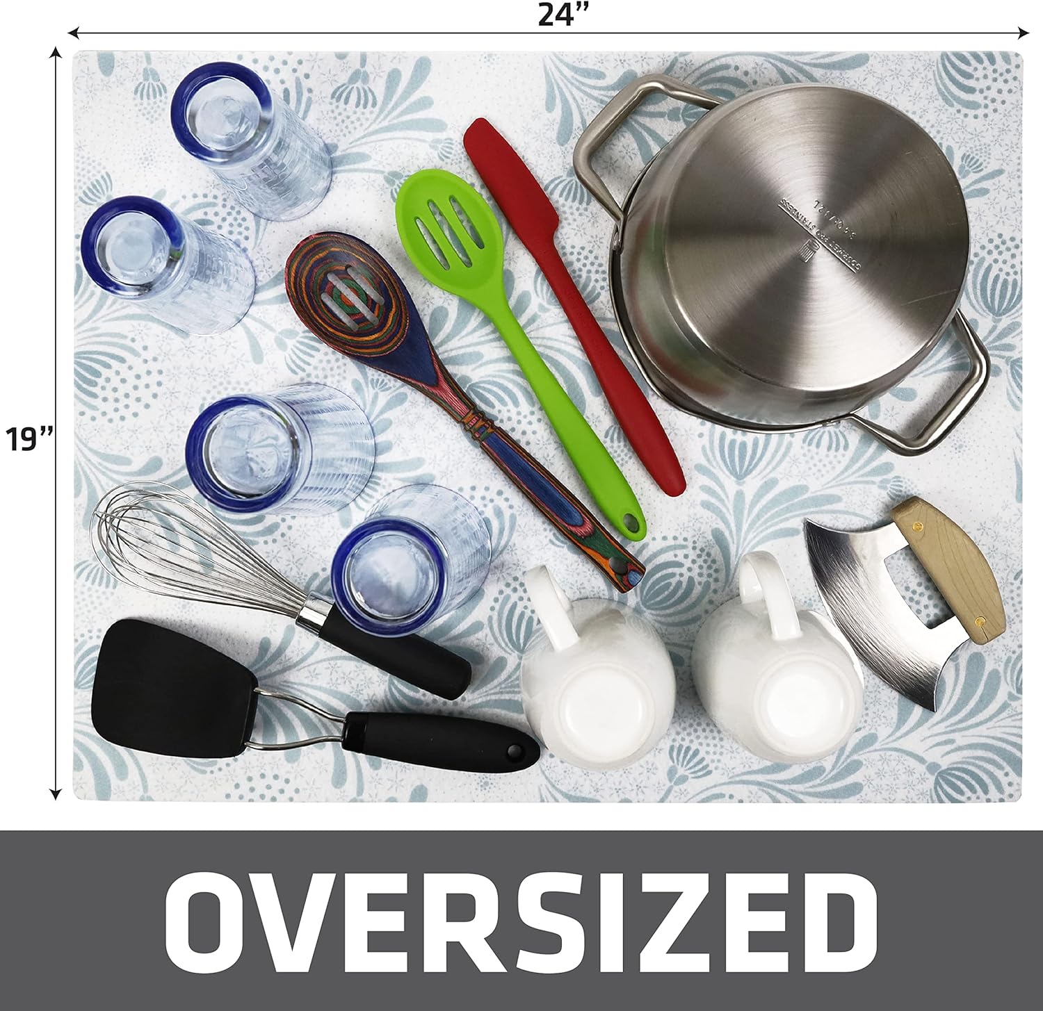 Drymate XL Dish Drying Mat, Oversized (19”x24”), Low-Profile, Super Absorbent, Quick Dry Fabric, Waterproof & Slip-Resistant, for Kitchen Counter, Trimmable, Easy to Clean (USA Made)(Light Blue)