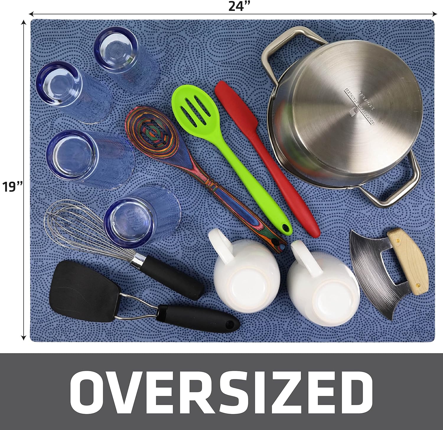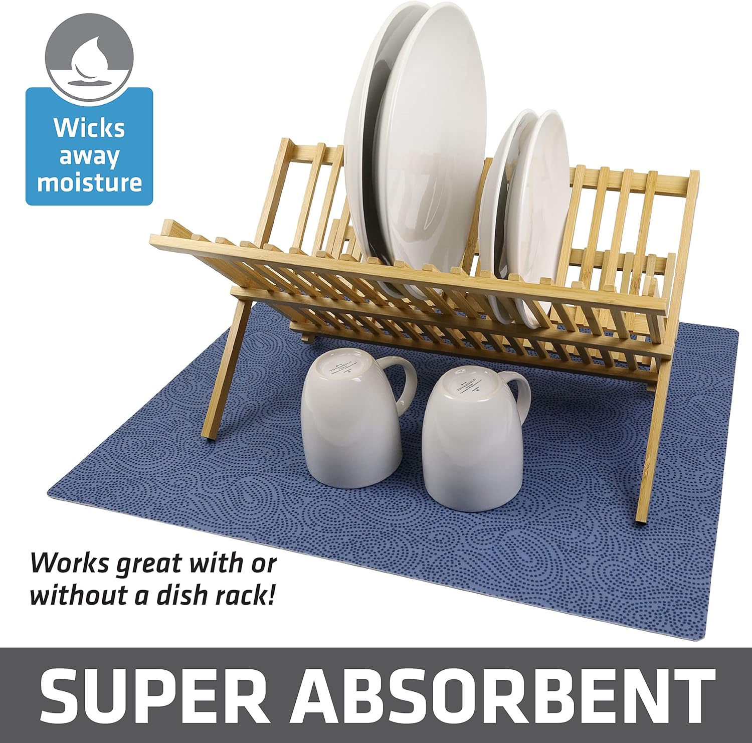 Drymate XL Dish Drying Mat, Oversized (19”x24”), Low-Profile, Super Absorbent, Quick Dry Fabric, Waterproof & Slip-Resistant, for Kitchen Counter, Trimmable, Easy to Clean (USA Made)(Blue)