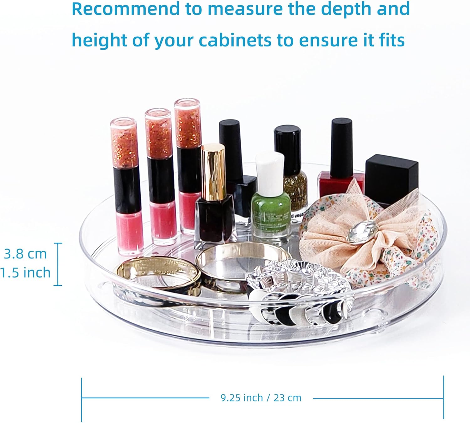 2 Pack Lazy Susan 9.25" Inch Turntable Organizer Pantry Organization and Storage Container Bins Spice Rack Cabinet Rotating Condiment for Pantry Kitchen Vanity Bathroom Jewelry Holder Clear