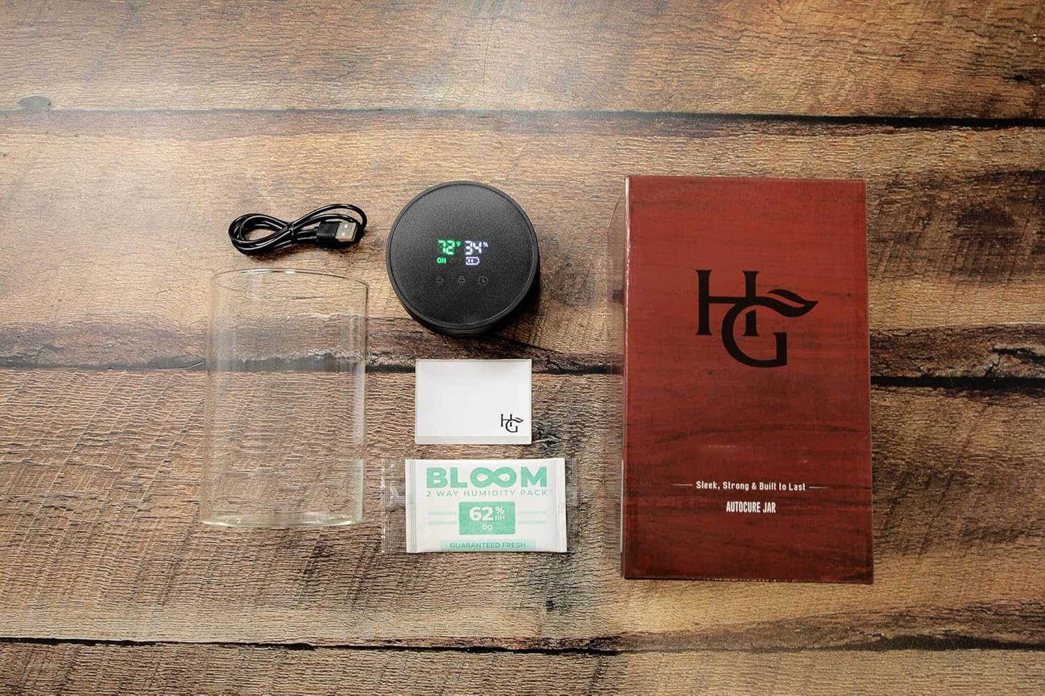 Herb Guard Auto-Cure Smart Jar and Vacuum Seal Curing Jar with Built In Hygrometer (1 Liter / 2 Oz Capacity) Curing Kit & Child Resistant Container Keeps Herbs and Serving Spices Fresh for Months