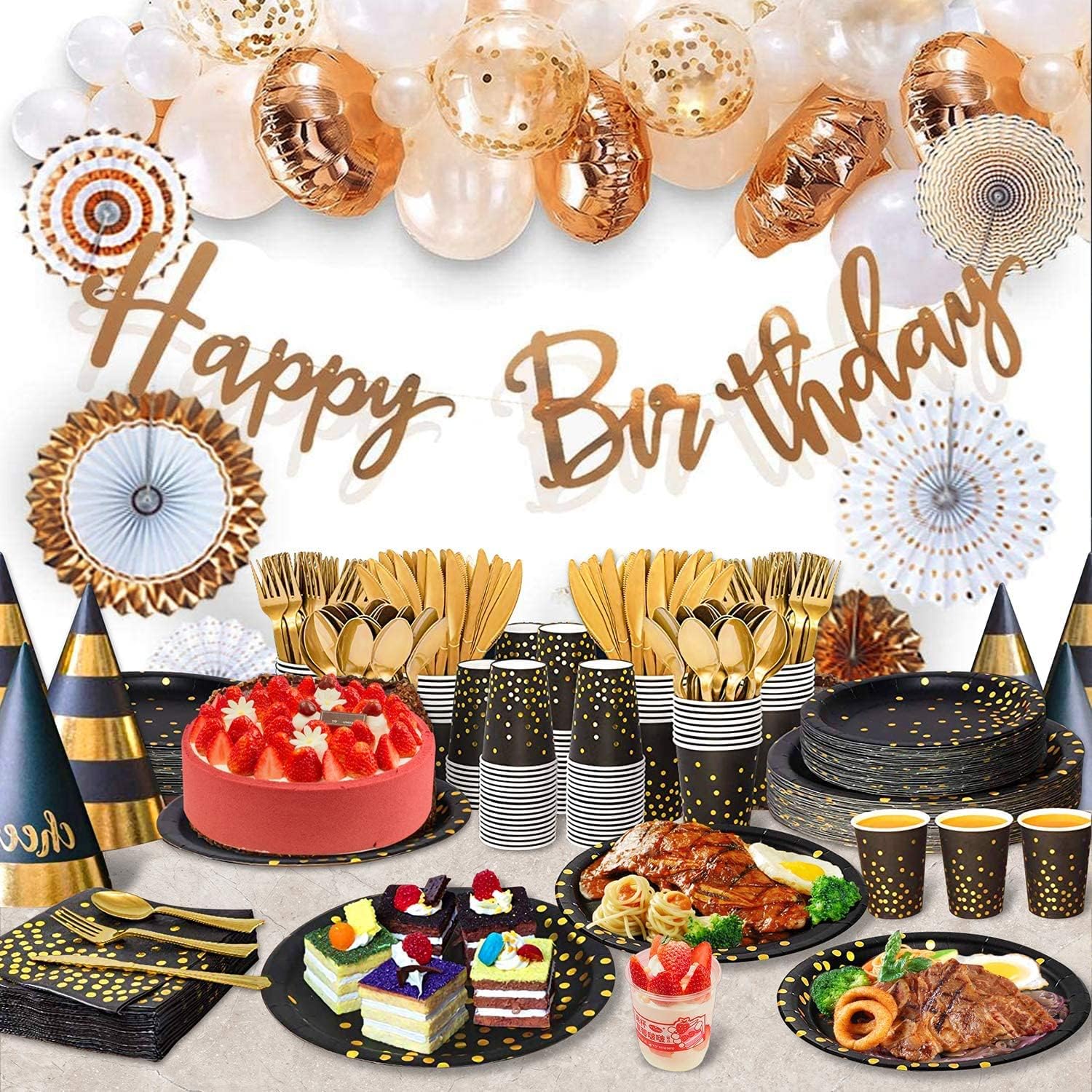 - âăPerfect After-sales Serviceă: We not only provide high-quality products, but we also provide good after-sales service. If you have any questions, please contact us through amazon. We will reply to you within 24 hours and solve your problems perfectly. What are you waiting for? Click "Buy Now" to have a perfect Black and Gold Party Dinnerware.