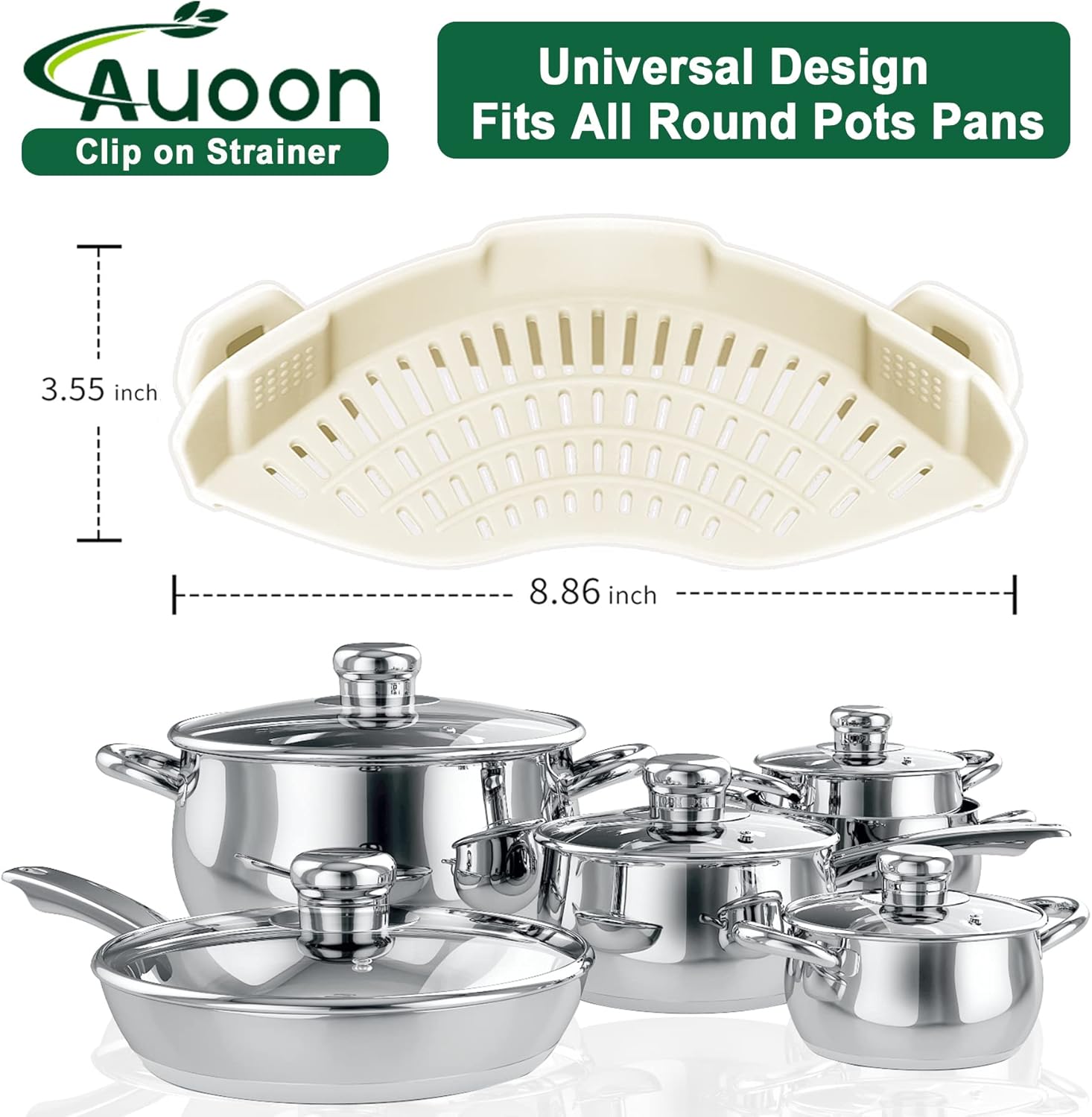 - 【Quick Draining】AUOON strainer is designed for efficient draining. It's easy-to-use mechanism allows for quick separation of liquids from solids, saving you time and effort in the kitchen