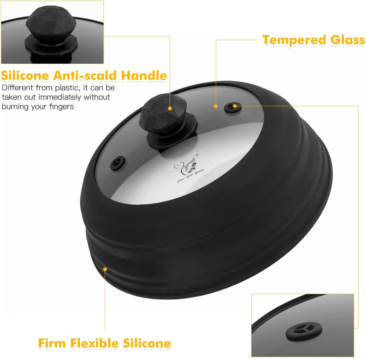 Microwave Splatter Cover Vented Glass Cover Splatter Guard Lid with Collapsible Silicone for Food as Pot Cover Plate Cover 10.8 inch for 6 7 8 9 10 inch Plate Bowl Black