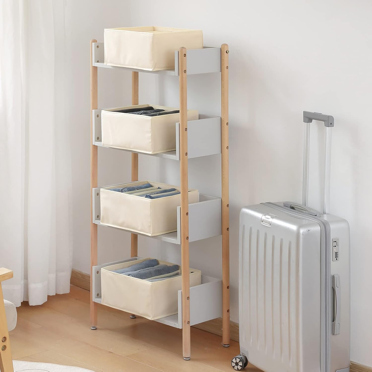 - 5 GRIDS JEANS ORGANIZED: This jeans storage has five compartments with a width of 2.52 inches, which can store your jeans, pants, leggings, T-shirts, dresses, towels, etc. The 5 grids can be used to store your clothes from Monday to Friday, making everything organized.