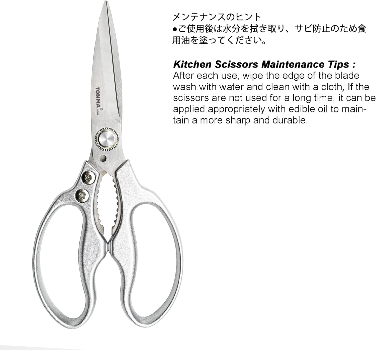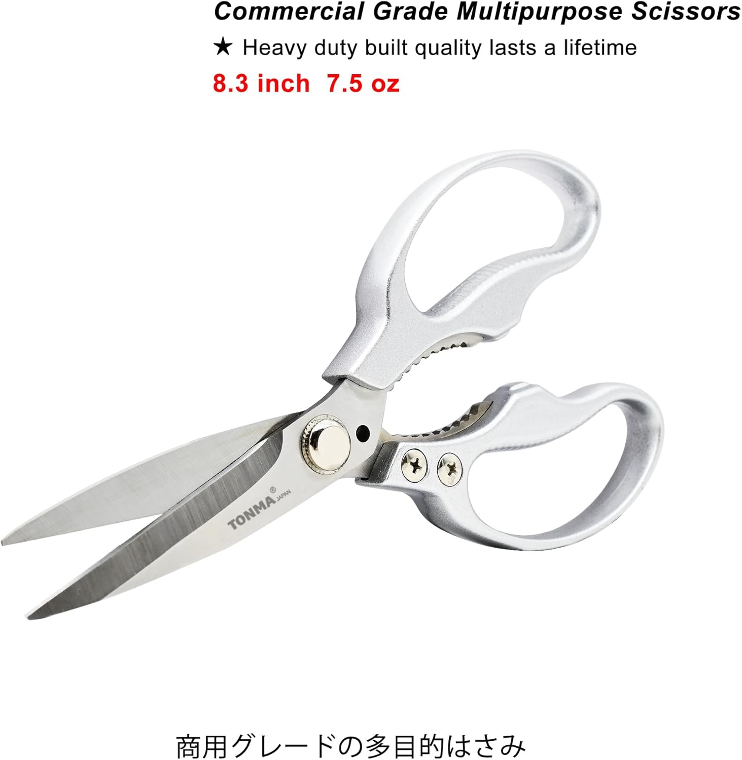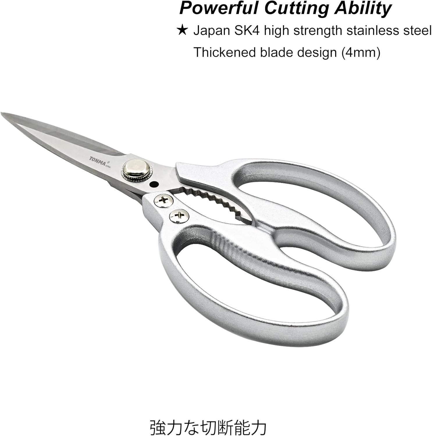 - [ INDUSTRIAL QUALITY KITCHEN SHEARS ] - The blades of all purpose kitchen shears powerful are made of high-strength Japanese SK4 heavy duty stainless steel (4mm blades thickness, HRC: 60±1), the TONMA multipurpose kitchen scissors all-purpose have heavy-duty built quality lasts a lifetime, great as herb scissors, cooking food scissors, utility scissors, craft scissors, tailor fabric scissors.