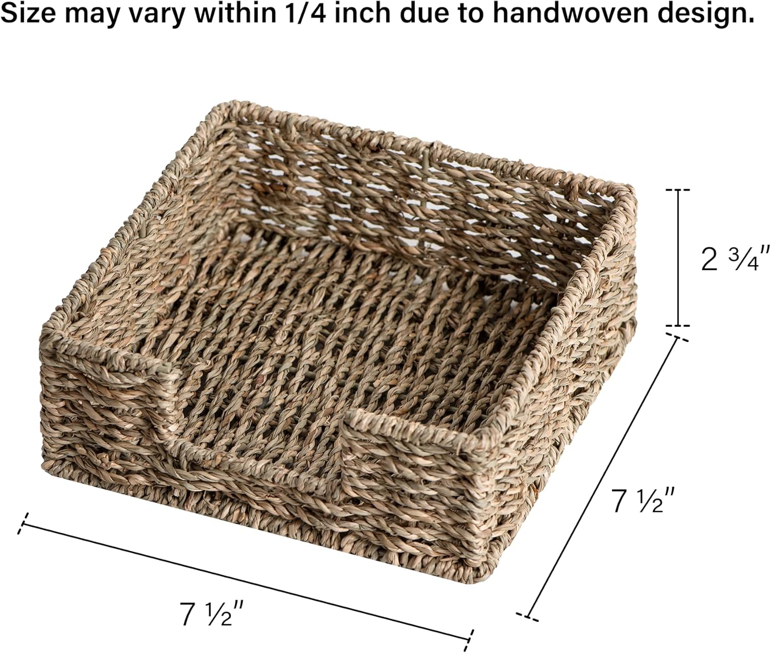 StorageWorks Seagrass Napkin Holder for Table, Wicker Napkin Baskets for Bathroom, Rustic Napkin Dispenser for Dinning Room, Guset Room, 7 ½"L x 7 ½"W x 2 ¾"H, 1 Pack