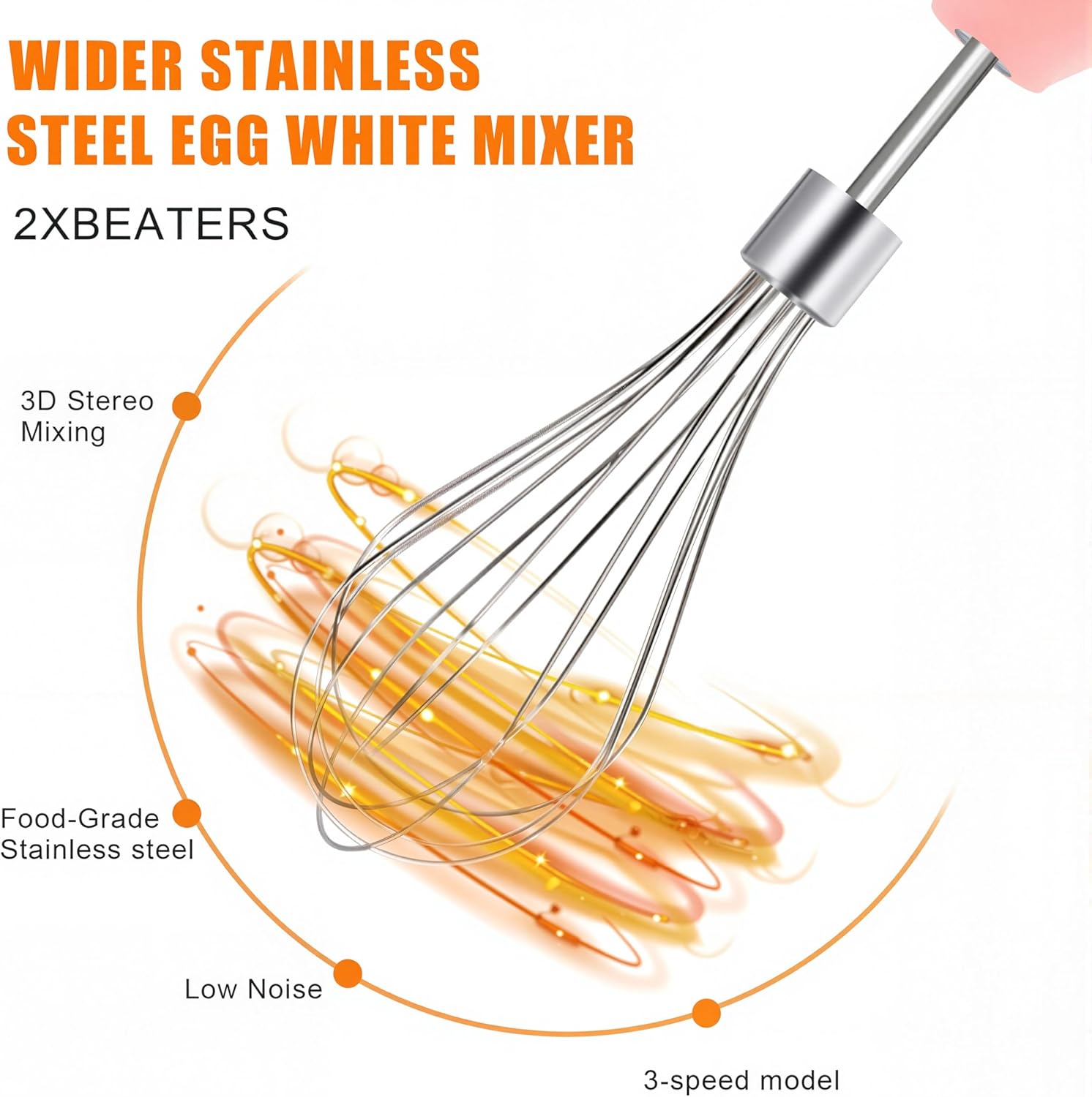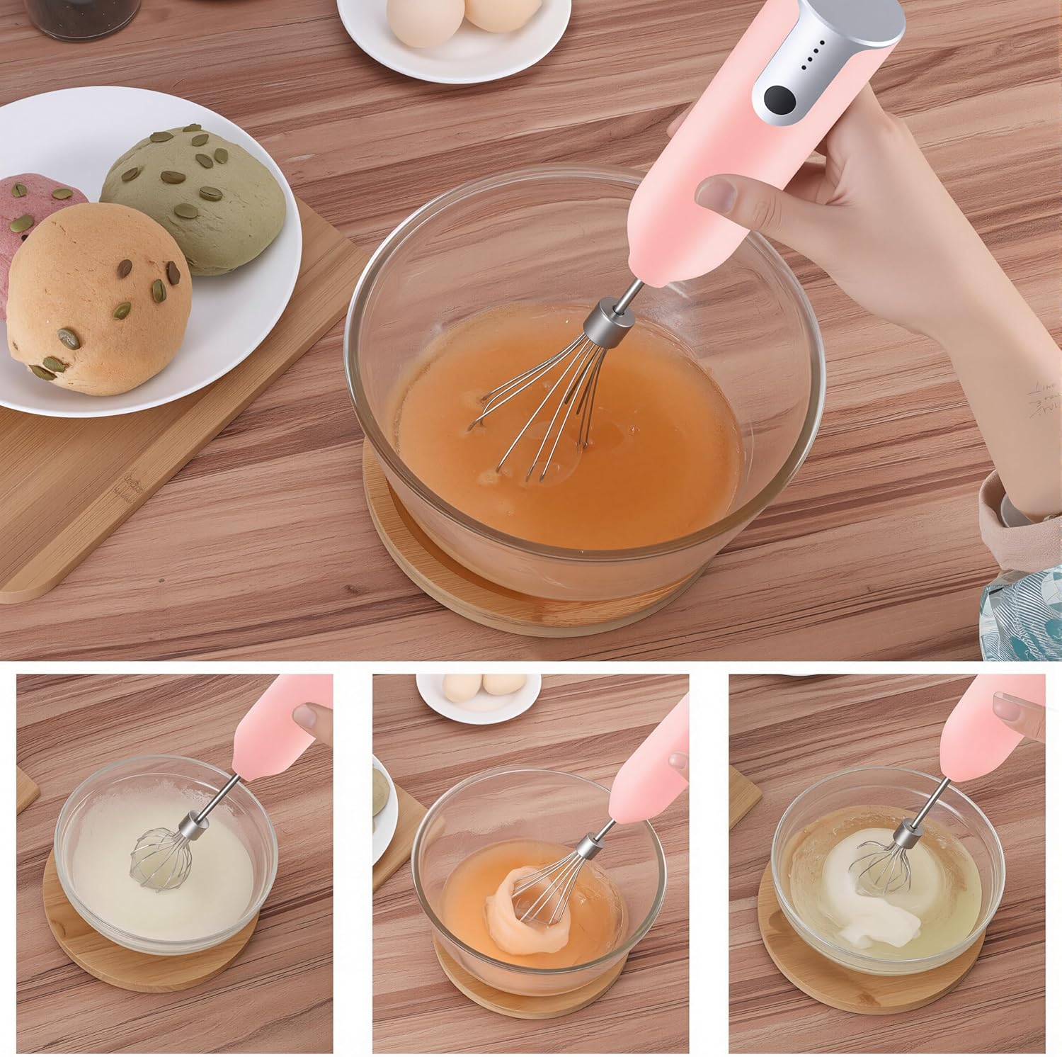 Electric Egg Beater Whisk, USB Charging Mixer, Three-Speed Adjustment, Suitable for Whisking Eggs, Cream, Sauce, Jam Supplements and More, Pink