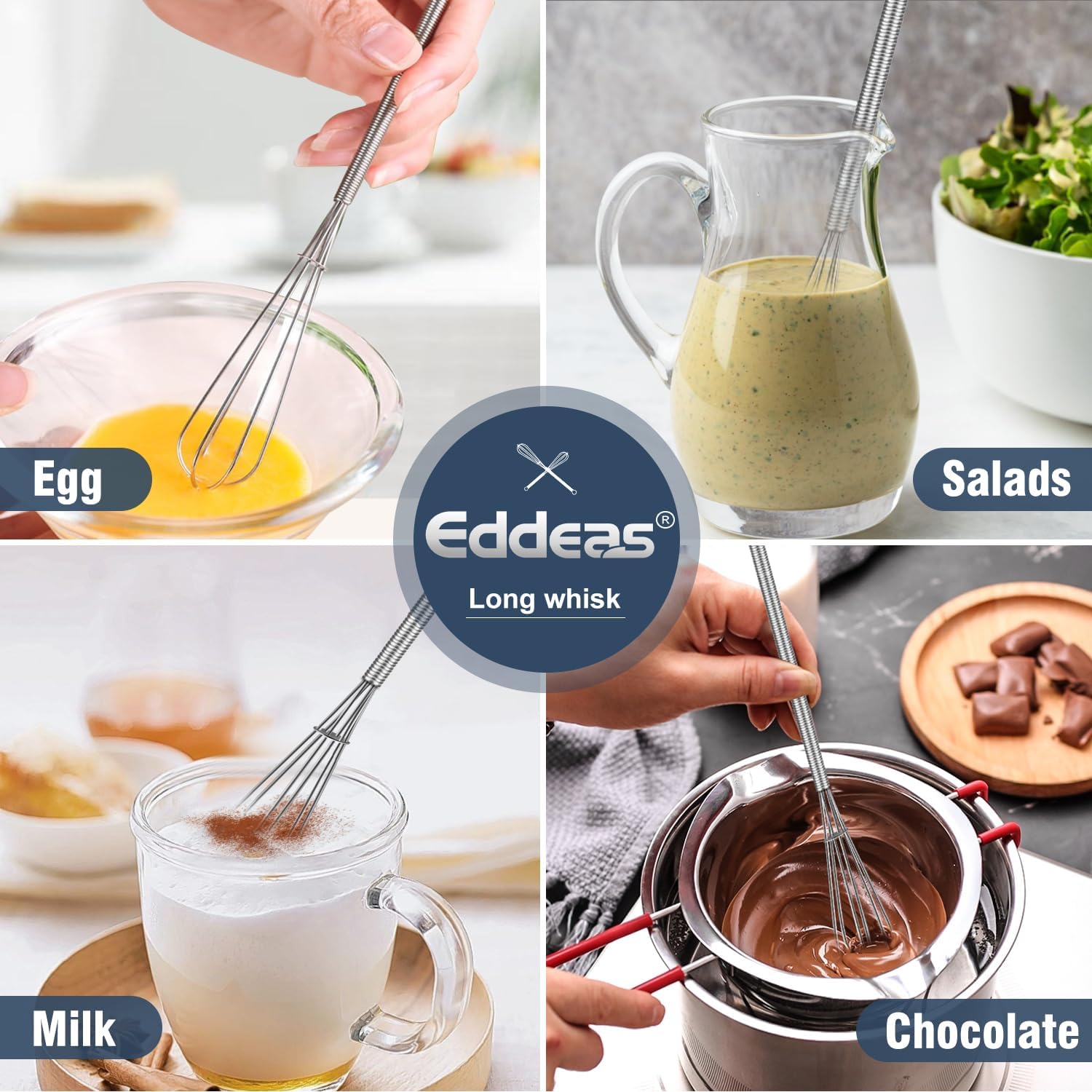 - SUPER PERFORMANCE AND MULTIPURPOSE - Eddeas Long small whisk can withstand temperatures up to 450℉.Eddeas small whisk provides you with powerful whipping and aeration.