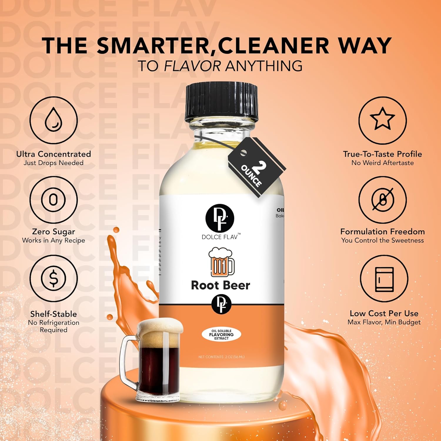 Dolce Flav Root Beer Extract – 2 Ounce Oil-Soluble Kosher, Sugar-Free, Concentrated Classic Root Beer Flavoring for Baking, Chocolates & Desserts, Includes Measured Dropper
