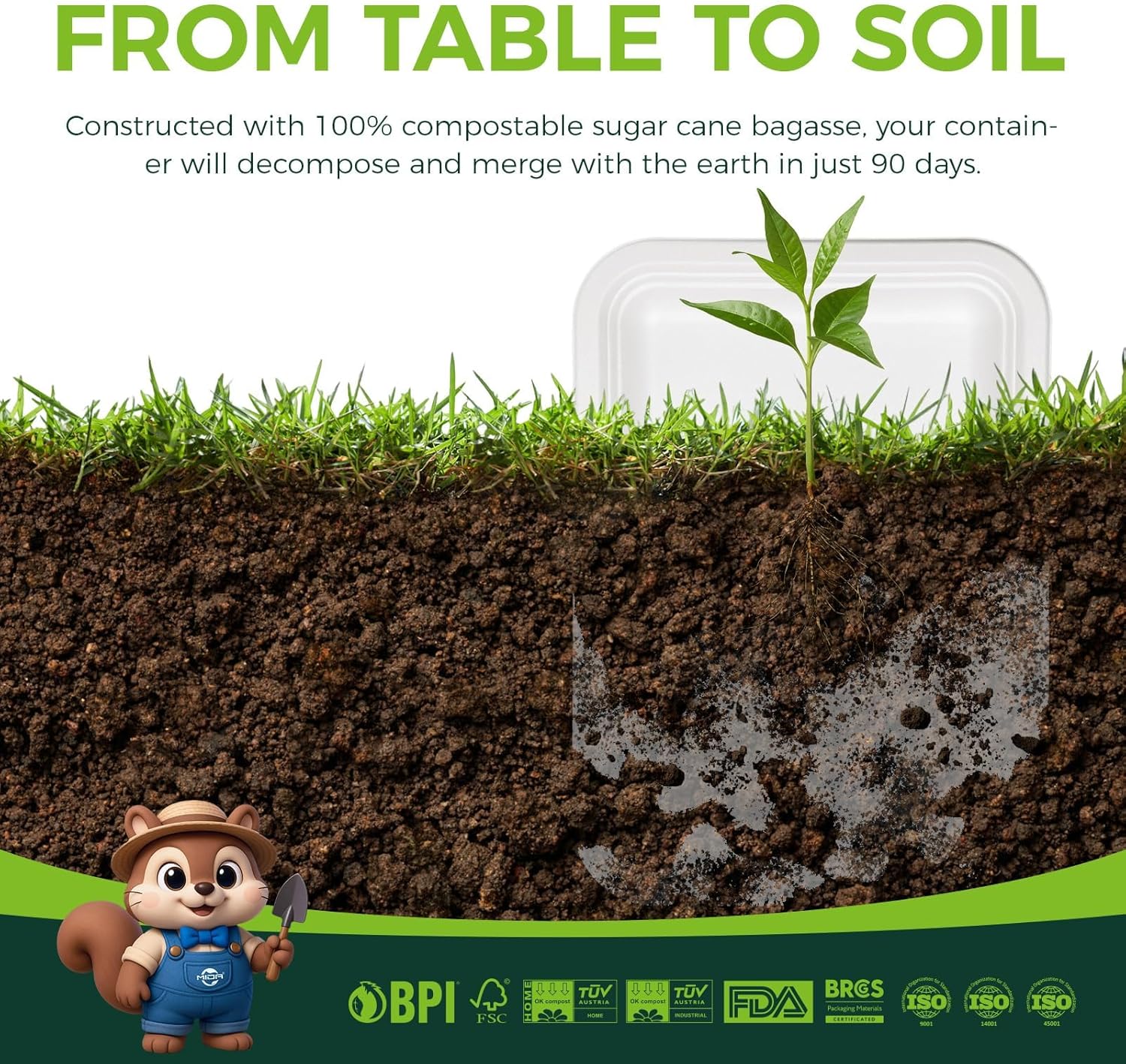 - EASIER AND FREE LIFE: Would you like to enjoy your wonderful dinner without spending a lot of time washing dishes? Choose our compostable food trays and you can get a more freewheeling lifestyle. More time in preparing fresh and delicious cookings, and less time in constantly washing dishes. Lets' join the green future now!