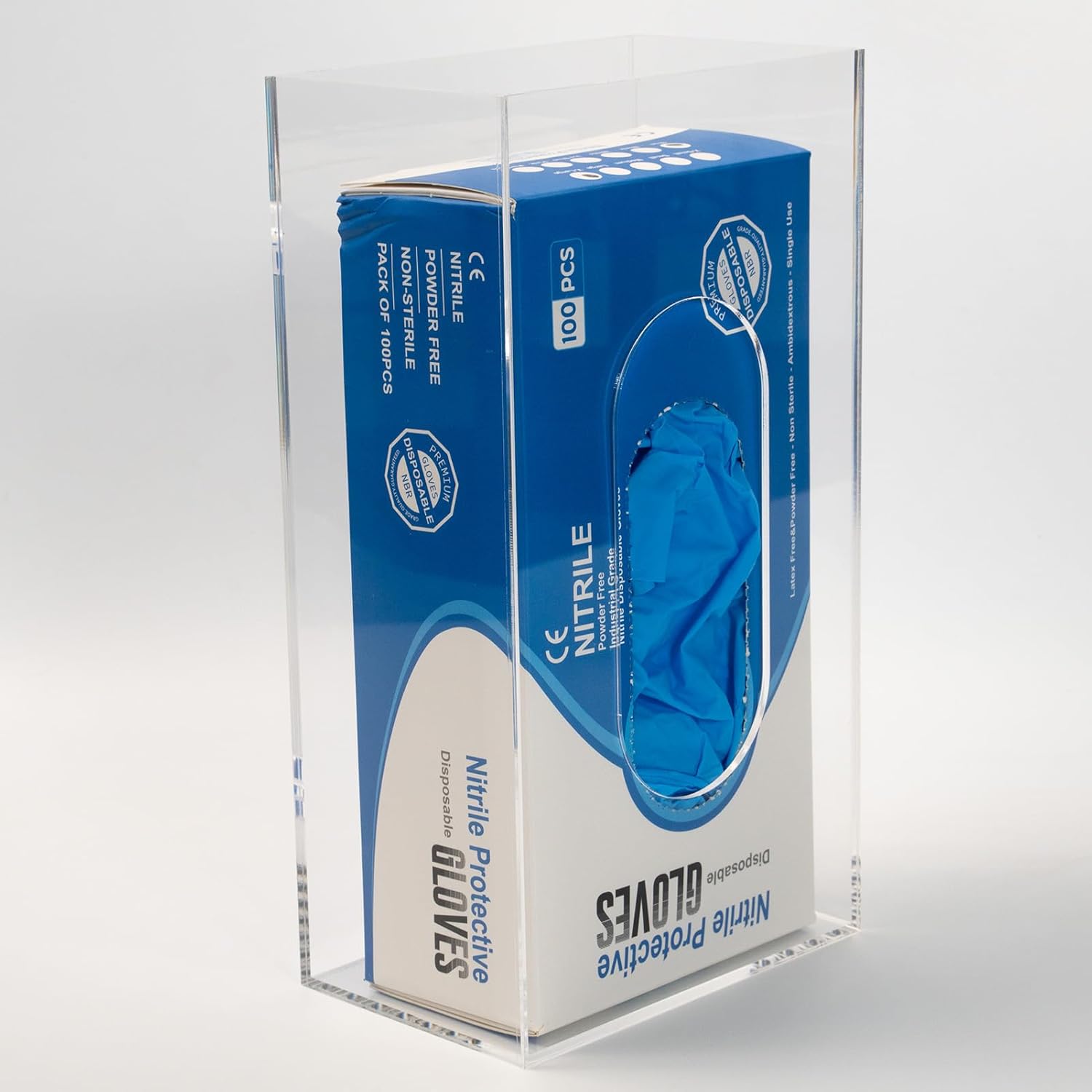 Glove Box Holder Dispenser Acrylic Single Side Loaded Clear Rack Storage Organizer for Medical, Latex, Rubber, Nitrile, Exam, Disposable Glove Boxes and Face Mask Holder Standing or Wall Mount