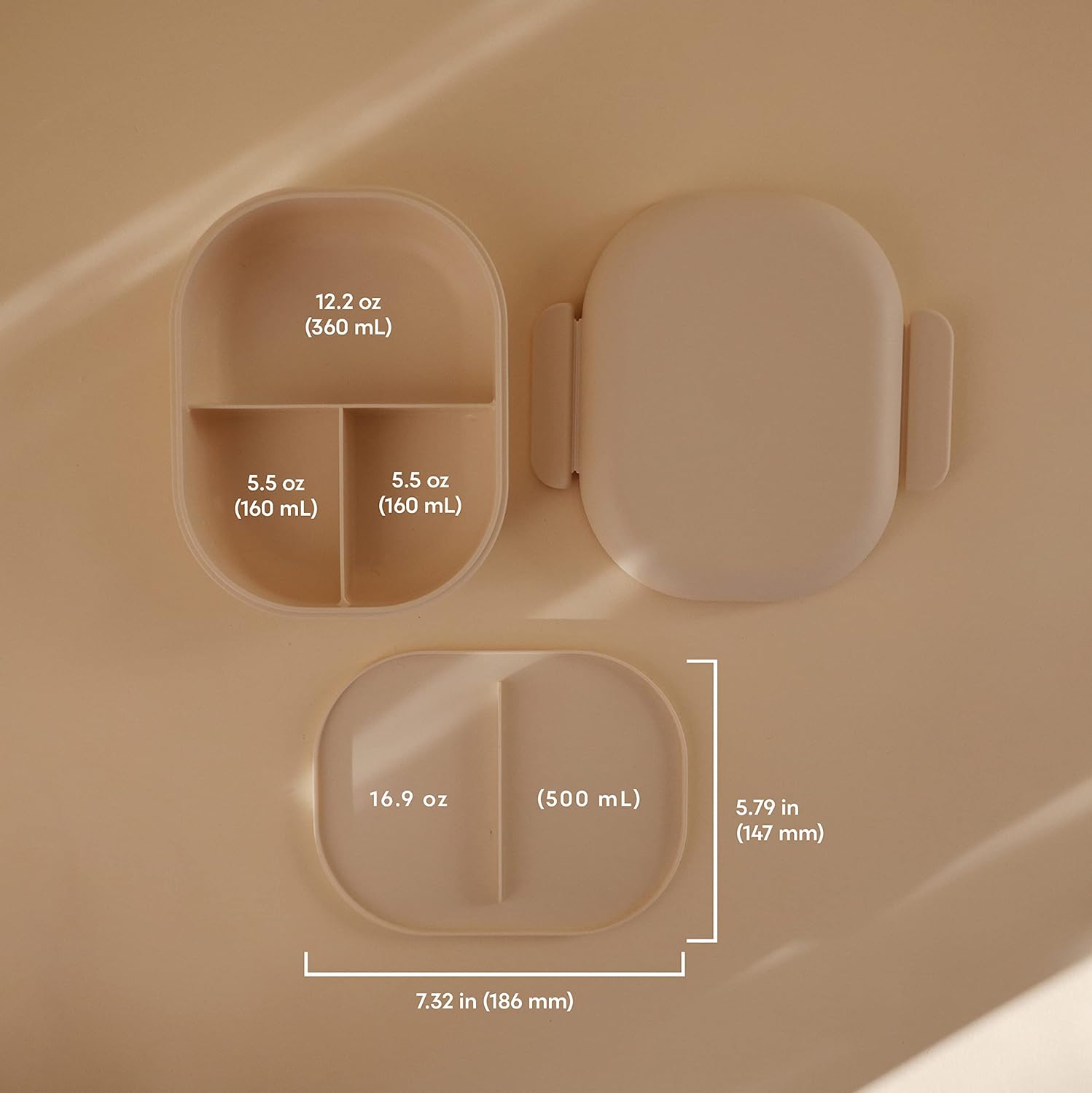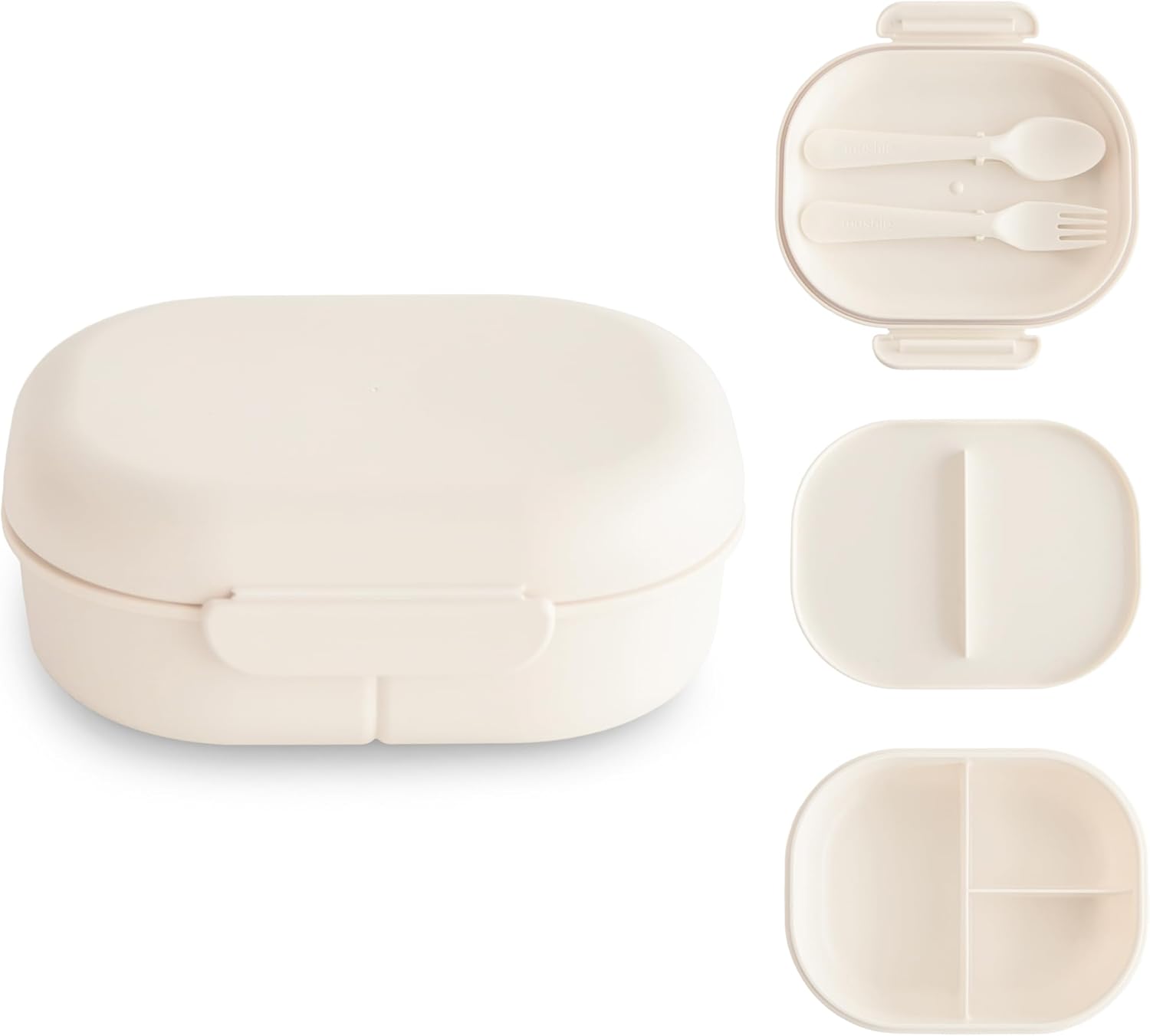 mushie Kids Bento Lunch Box | 3-Compartment & Removable Divider + Fork & Spoon Utensils | Great For Meals, School, Snacks On-the-Go | Dishwasher Safe (Ivory)
