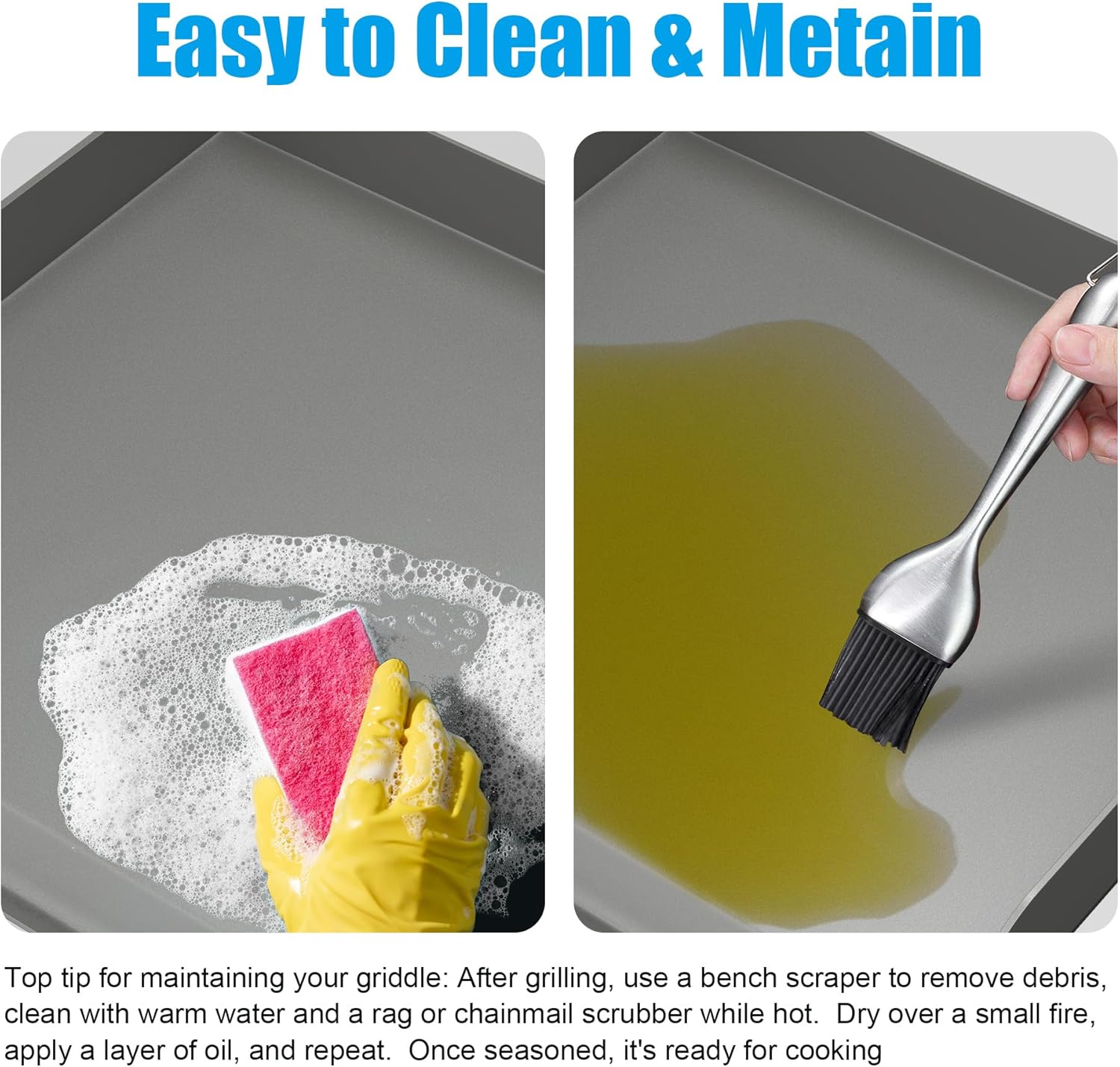 - High Quality Material:The griddle is made of heavy-duty steel, which ensures even heat distribution. During cooking, food is evenly heated, preventing issues like local overheating or undercooking. Moreover, the heavy-duty steel offers excellent high-temperature resistance, maintaining its shape even under intense heat, thus extending the product's lifespan