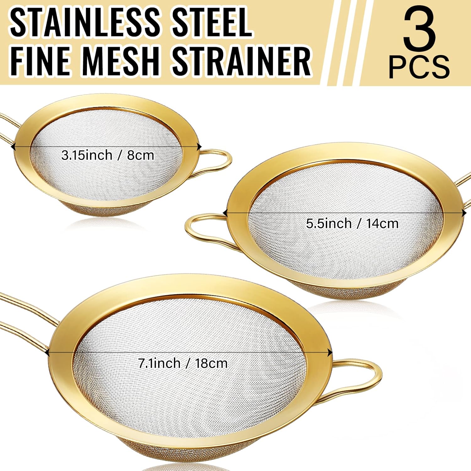 - Gold Kitchen Accessories: this package comes with 3 pieces of gold fine mesh strainers and 1 piece of 5 quart gold colander, this combination is nice to meet your daily usage and replacement needs, you can also share them with others