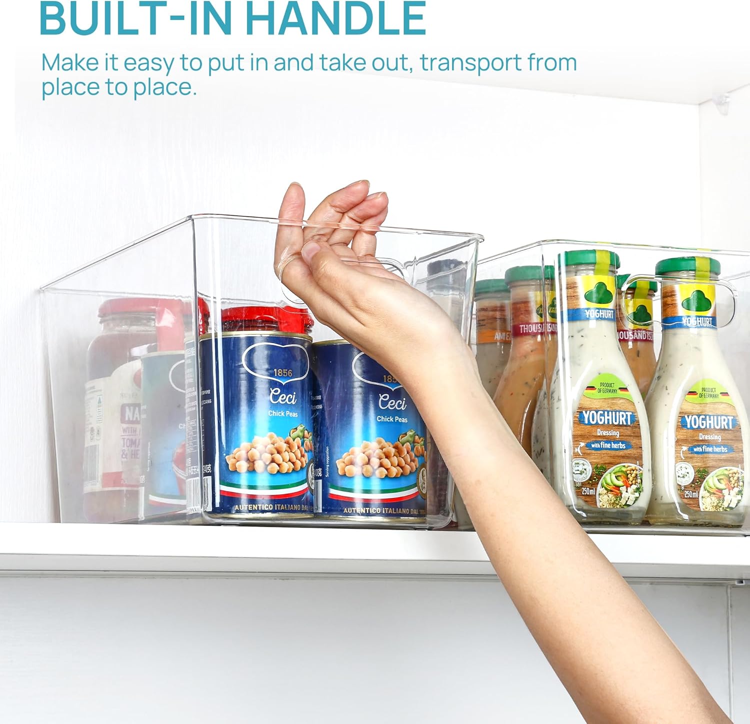 Vtopmart 6 PCS Clear Plastic Storage Bins, Pantry Organizer Containers with Handle for Refrigerator, Fridge, Cabinet, Kitchen, Countertops, Cupboard, Home Organization and Storage, XL
