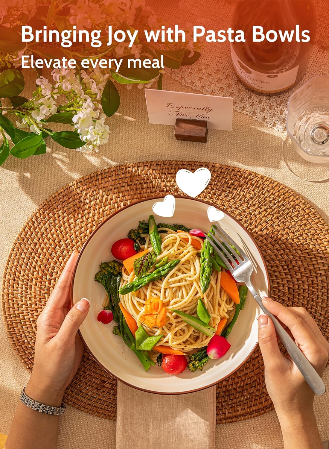 - Enjoy Delicious Food Safely and Healthily: Introducing our Pasta Bowls, crafted with a lead-free, all-natural glaze. Safety is paramount, and with our bowls, you can dine worry-free, knowing harmful substances are kept at bay. Whether it's a cozy family dinner or an elegant soirée, these bowls add a touch of health and nature to your dining experience.